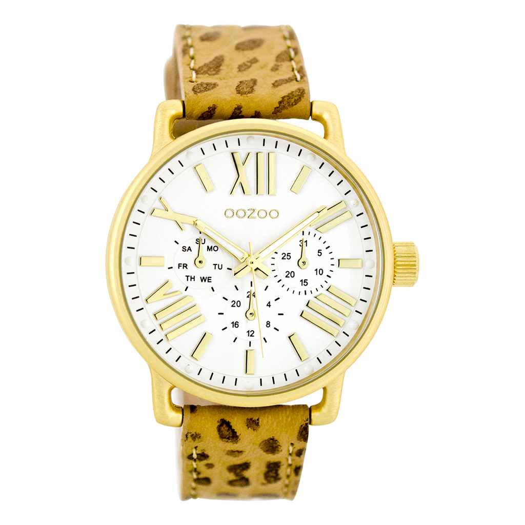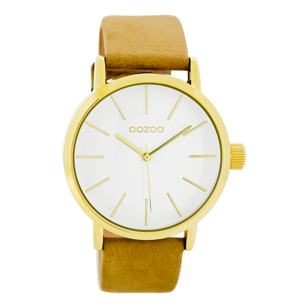 Gold coloured OOZOO watch with camel leather strap - C8011