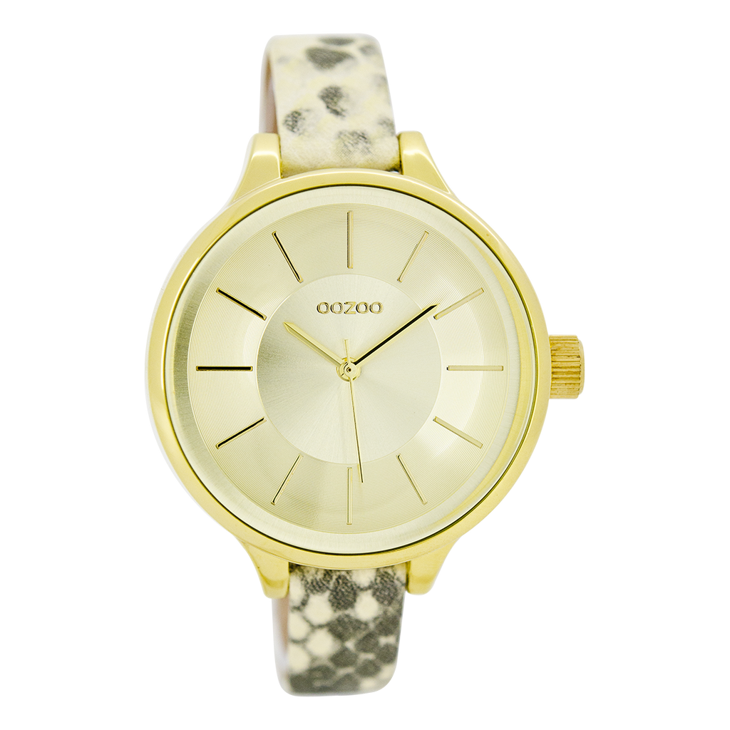 Gold coloured OOZOO watch with light grey leather strap - C11240