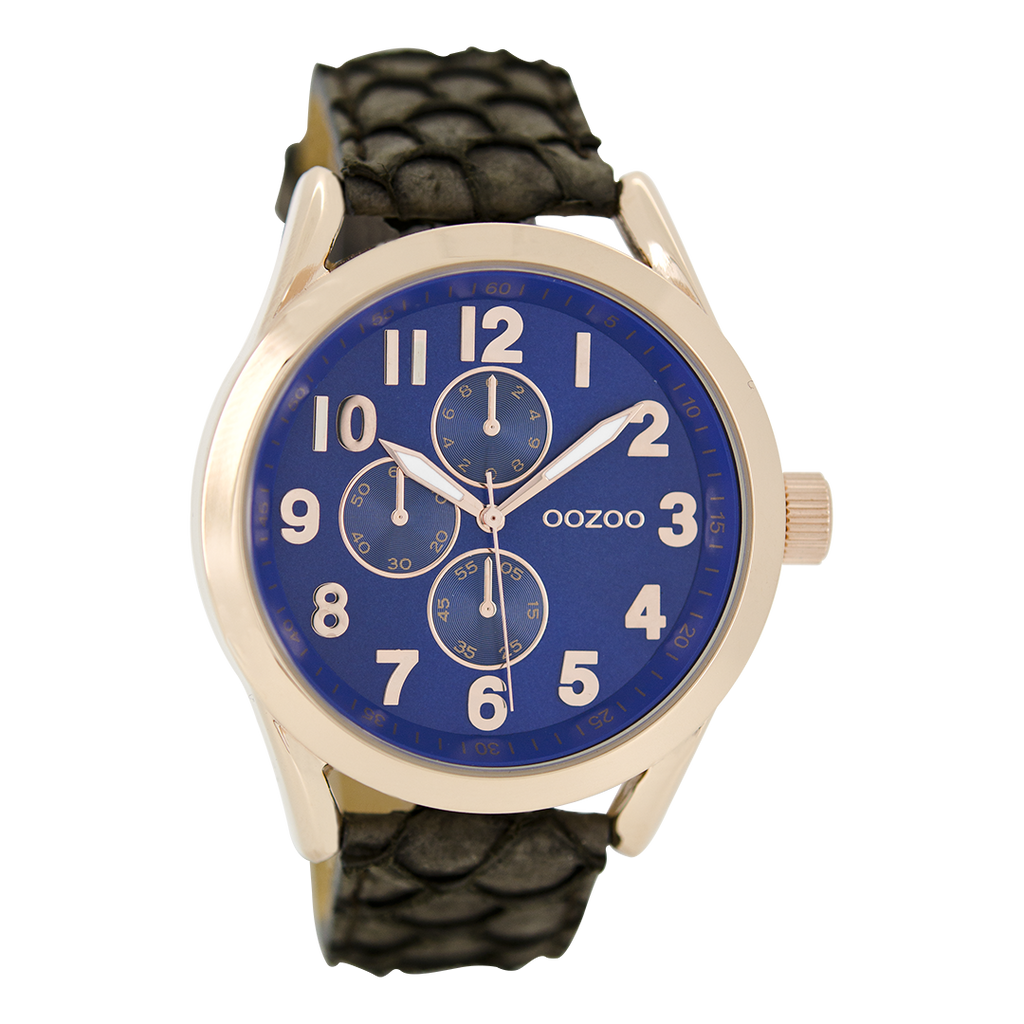 Rose gold coloured OOZOO watch with dark blue leather strap - C7598