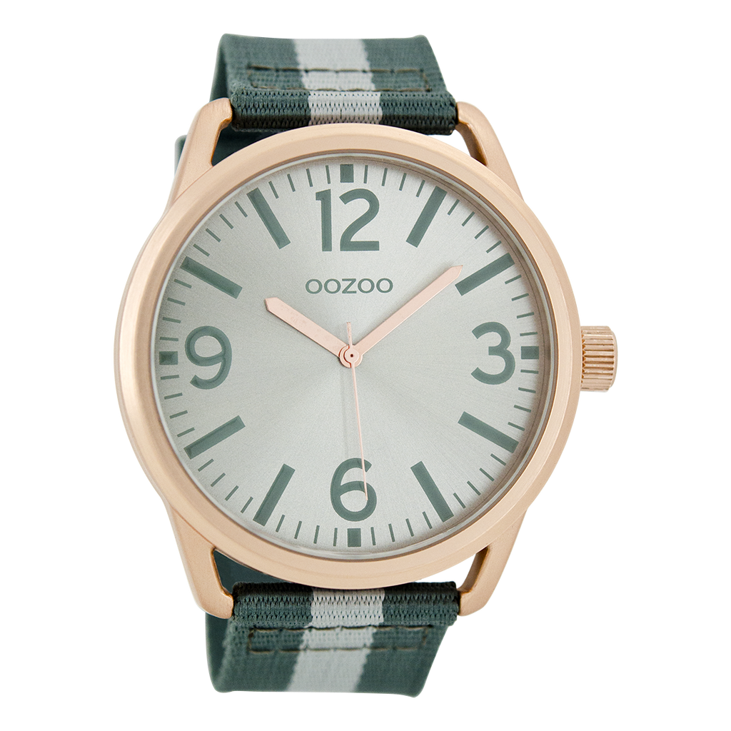 Rose gold coloured OOZOO watch with green/white leather strap - C7052