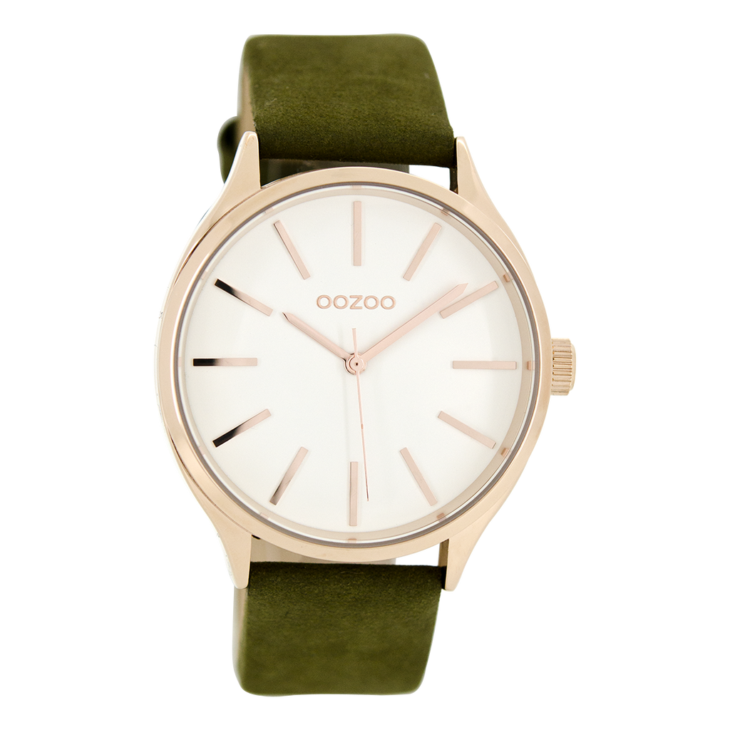 Rose gold coloured OOZOO watch with green leather strap - C8628