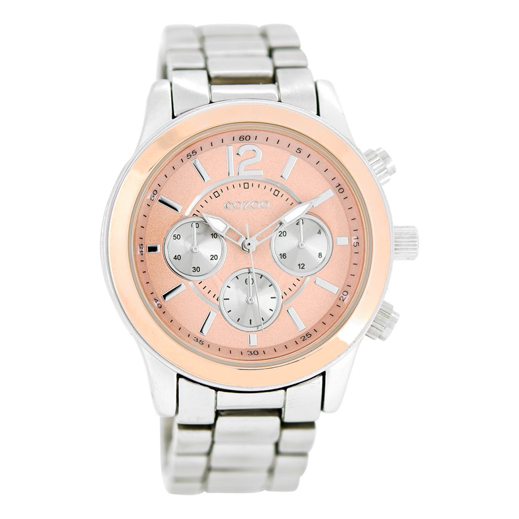 Rose gold coloured OOZOO watch with silver coloured stainless steel bracelet - C7232