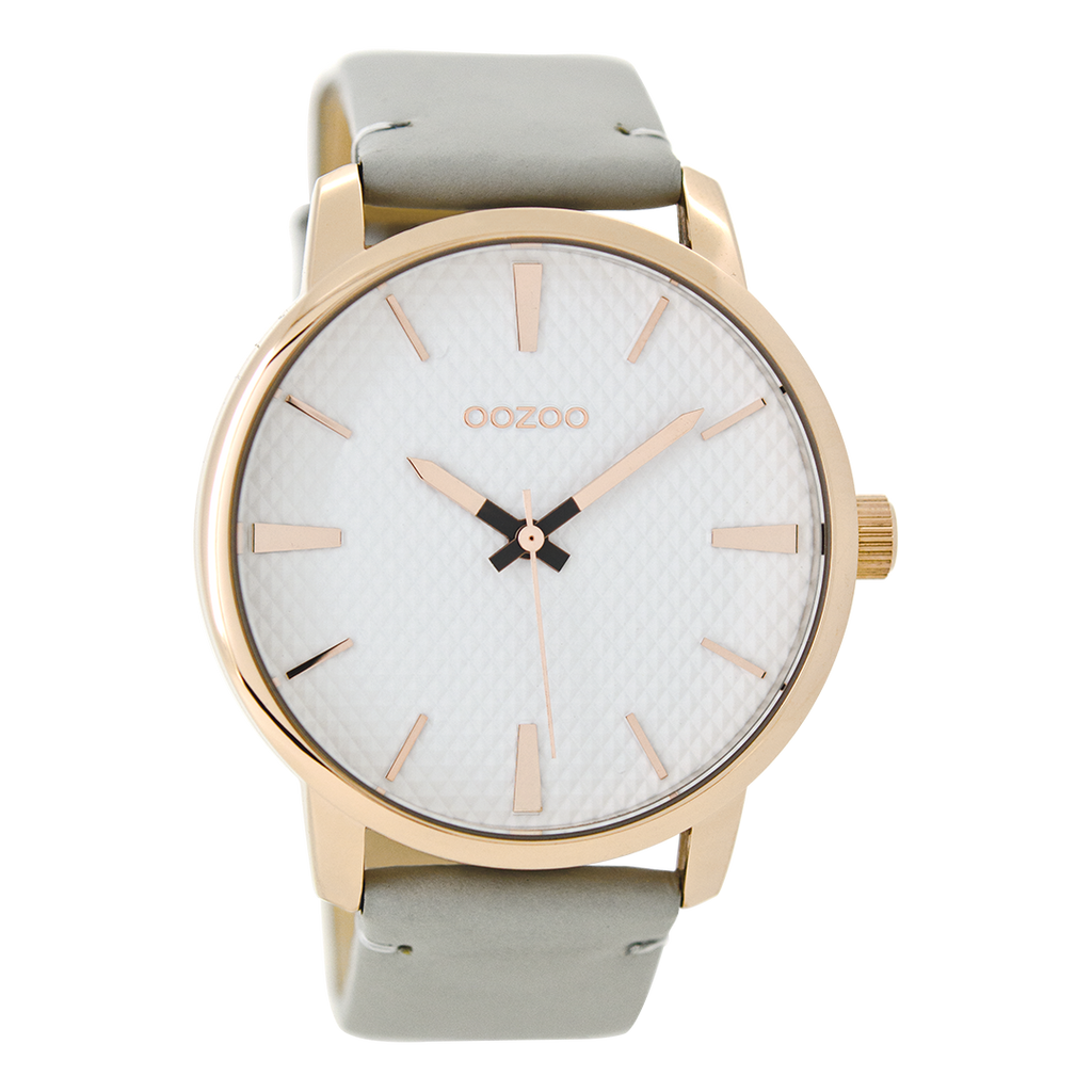 Rose gold coloured OOZOO watch with stone grey leather strap - C11040