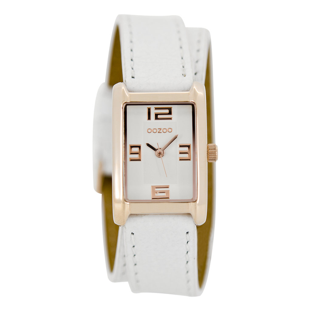 Rose gold coloured OOZOO watch with white leather strap - C9540