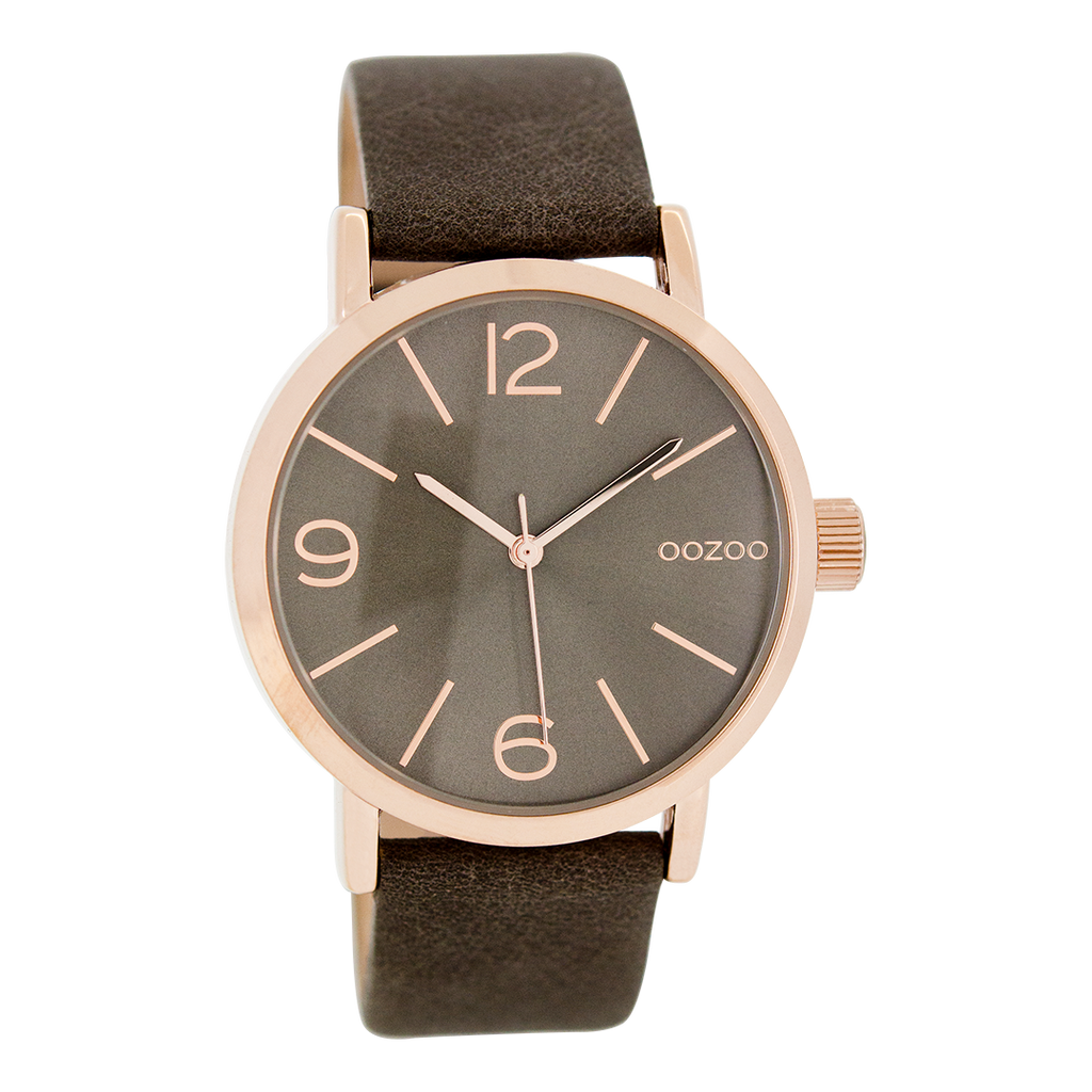 Rose gold coloured OOZOO watch with taupe leather strap - C8562
