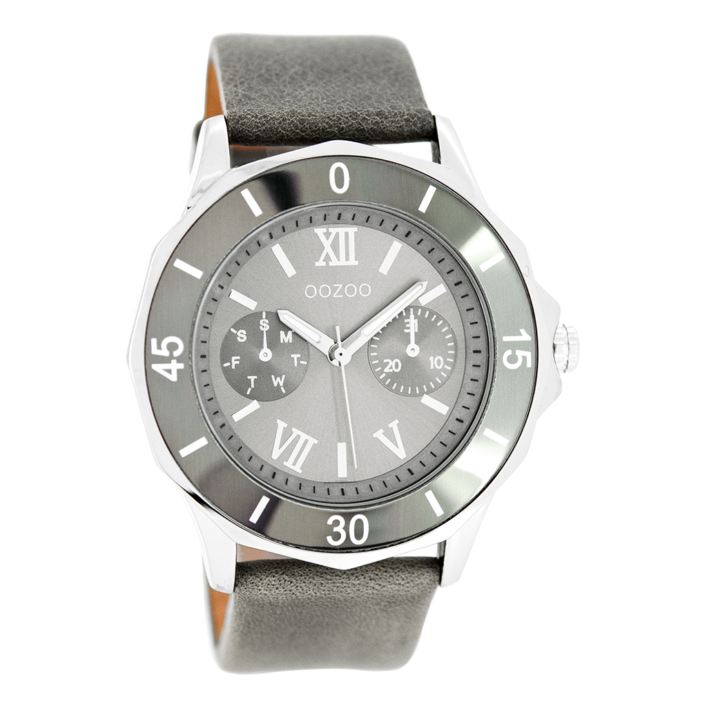 Silver coloured OOZOO watch with elephant grey leather strap - C9440