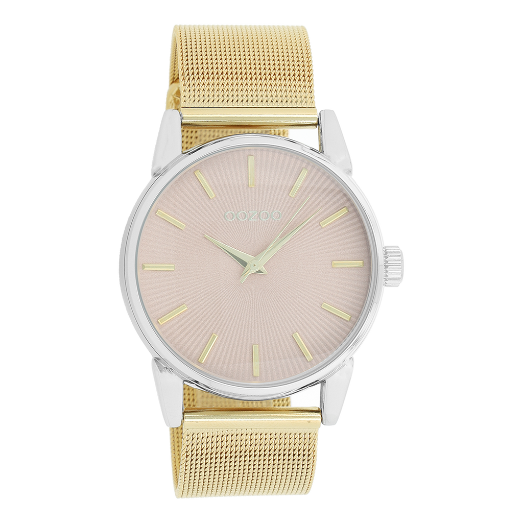 Silver coloured OOZOO watch with gold coloured metal mesh bracelet - C9546