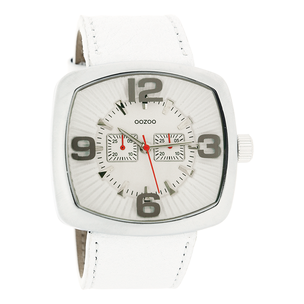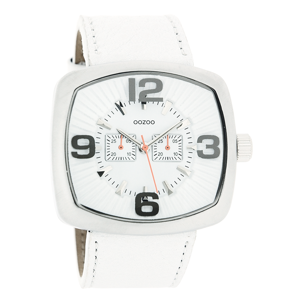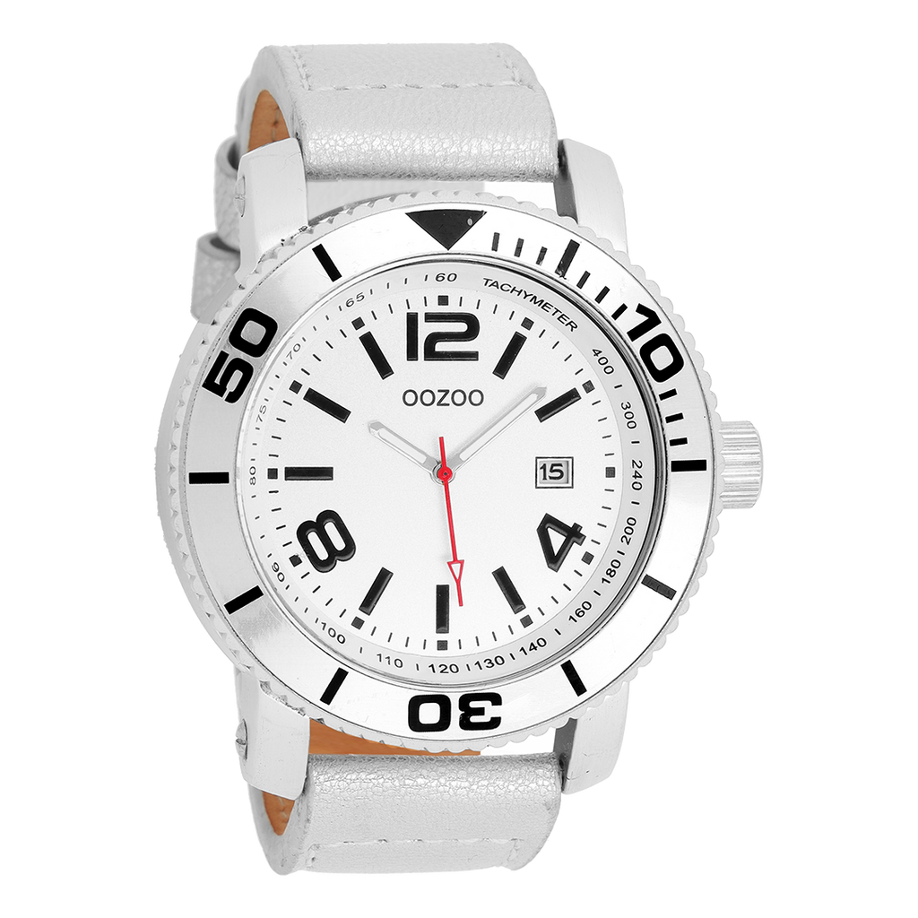 Silver coloured OOZOO watch with white rubber strap - C4820