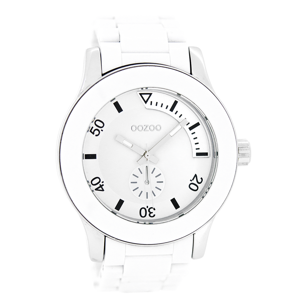 Silver coloured OOZOO watch with white plastic watch strap - C4940