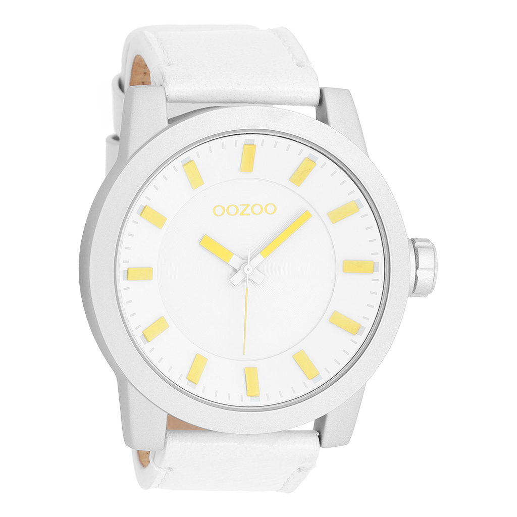 Silver coloured OOZOO watch with white plastic watch strap - C4880