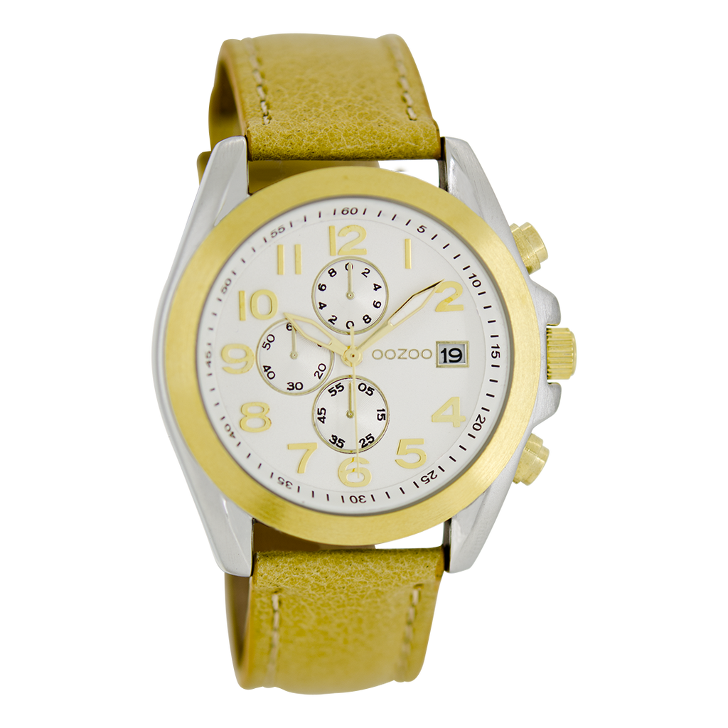 Silver coloured/gold OOZOO watch with sand leather strap - C6196