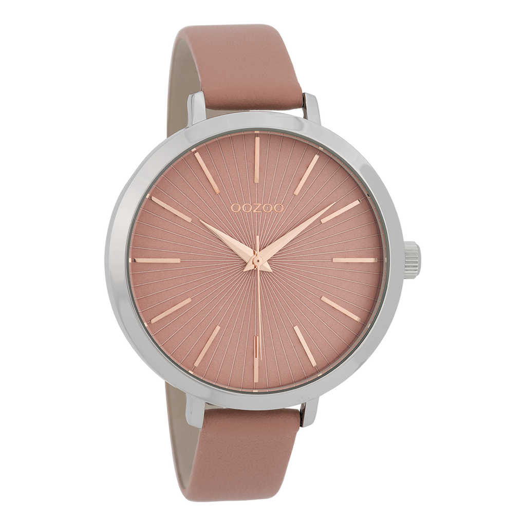 Silver coloured OOZOO watch with warm pink leather strap - C9672
