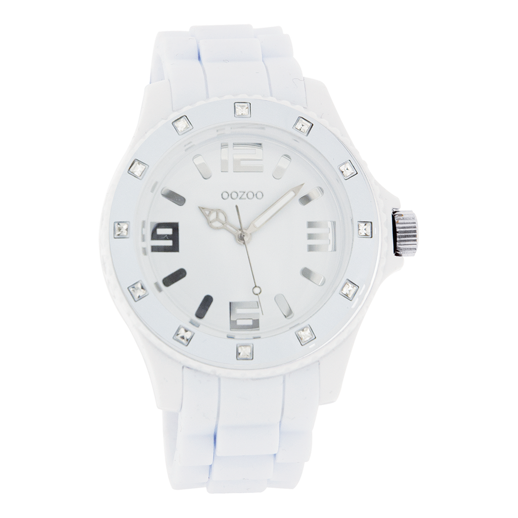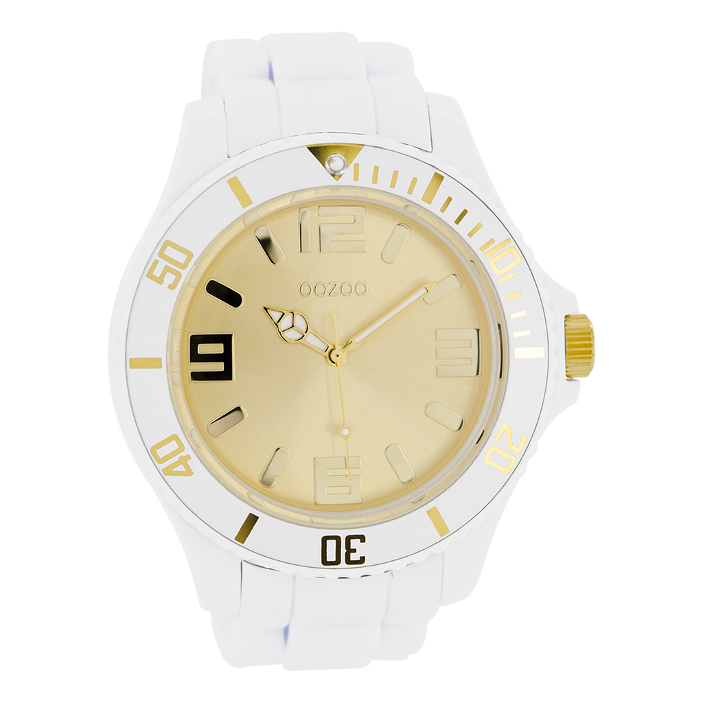 White/fluo orange OOZOO watch with white leather strap - C11316