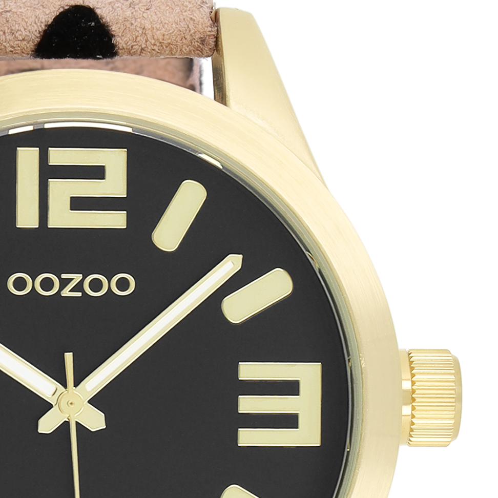 Gold coloured OOZOO watch with brown leather strap - C1098
