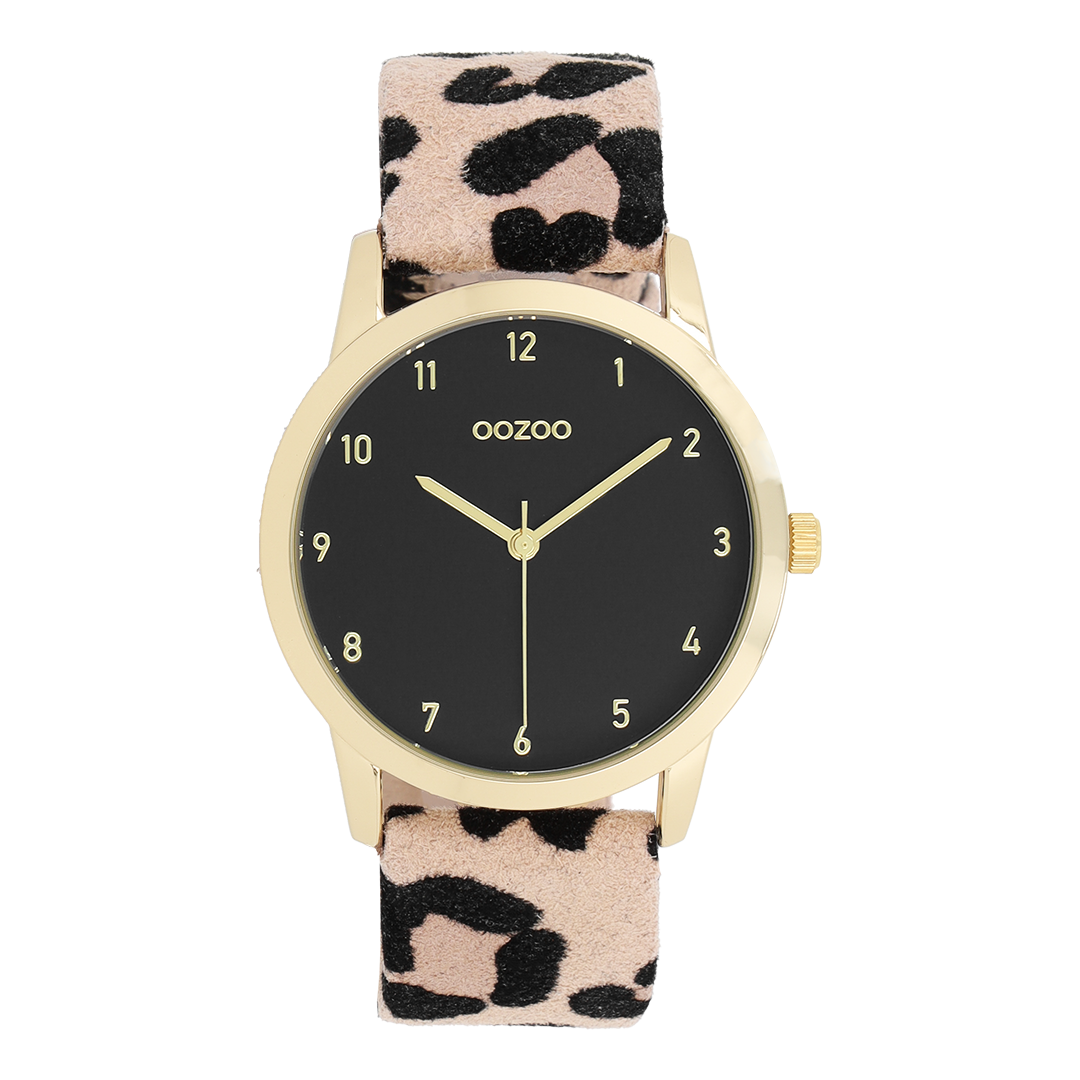 Stand out with this beautiful round ladies design from the trendy OOZOO Timepieces collection. The C11373 has a leopard print brown leather strap and 38 mm gold coloured metal watch case. You are making quite the fashion statement with this black dial, gold coloured numbers digits and matching hands. This essential watch for your wardrobe has a mineral glass, stainless steel backplate and is nickel safe. This watch has a 2ATM Japanese movement and is covered by a 2 year warranty (see section 3 of our Refund, shipping & warranty policy).