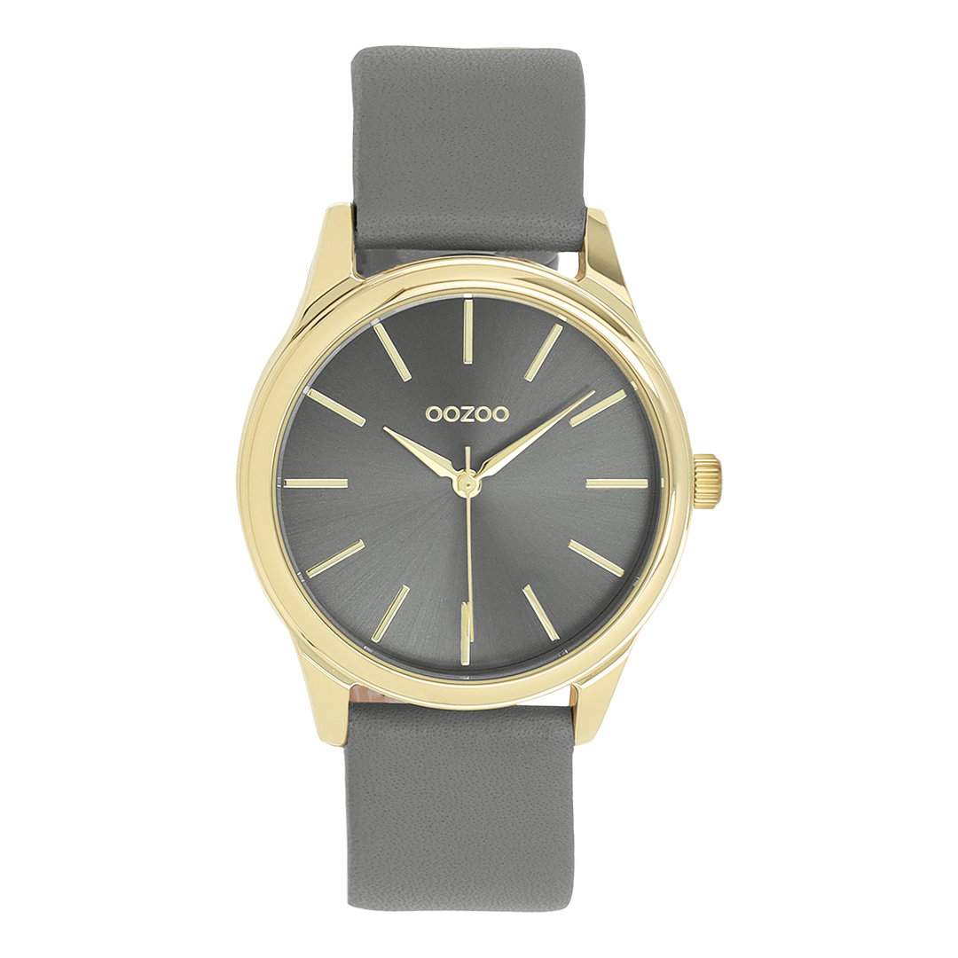 Gold coloured OOZOO watch with dark grey leather strap - C11679