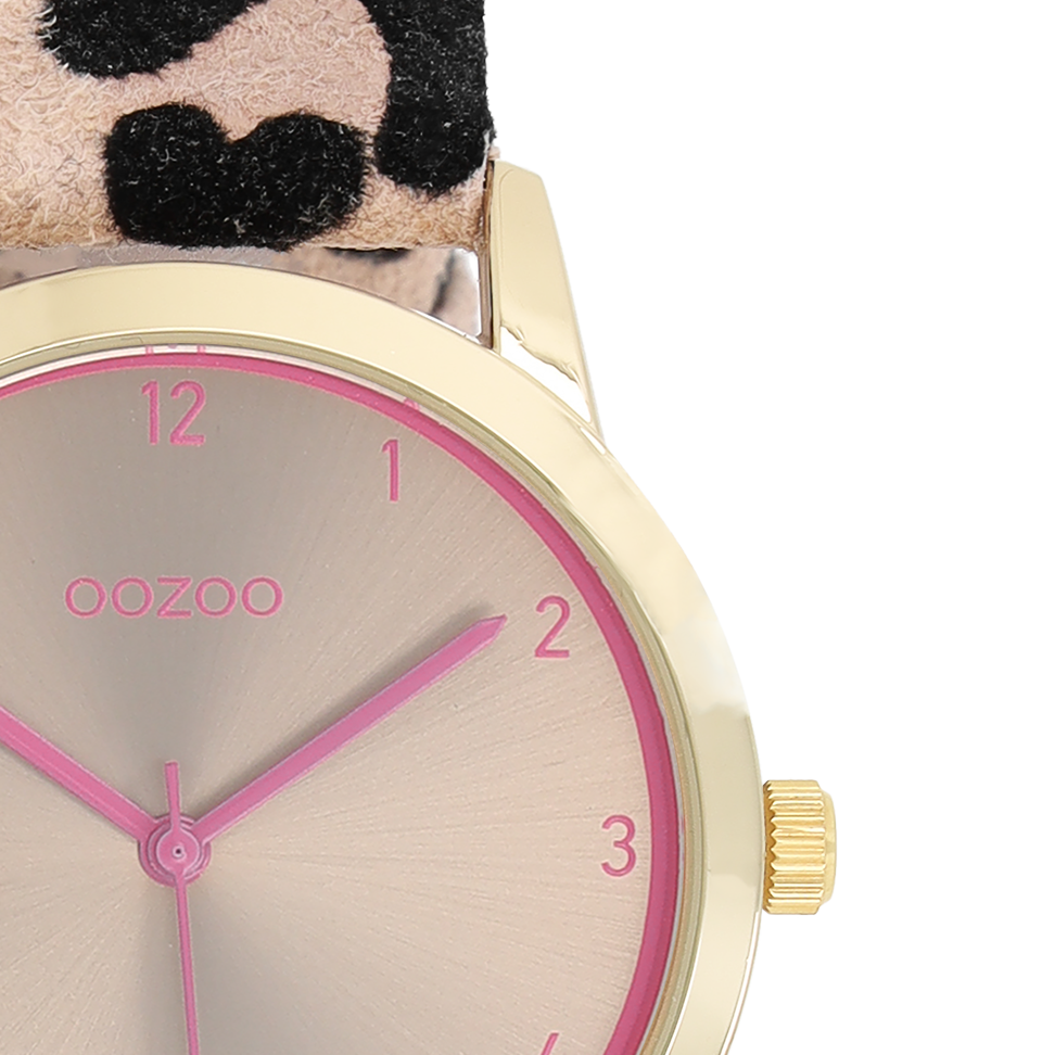 Stand out with this beautiful round ladies design from the trendy OOZOO Timepieces collection. The C11374 has a leopard print brown leather strap and 38 mm gold coloured metal watch case. You are making quite the fashion statement with this taupe sunray dial, fluo pink numbers digits and matching hands. This essential watch for your wardrobe has a mineral glass, stainless steel backplate and is nickel safe. This watch has a 2ATM Japanese movement and is covered by a 2 year warranty (see section 3 of our Refund, shipping & warranty policy).