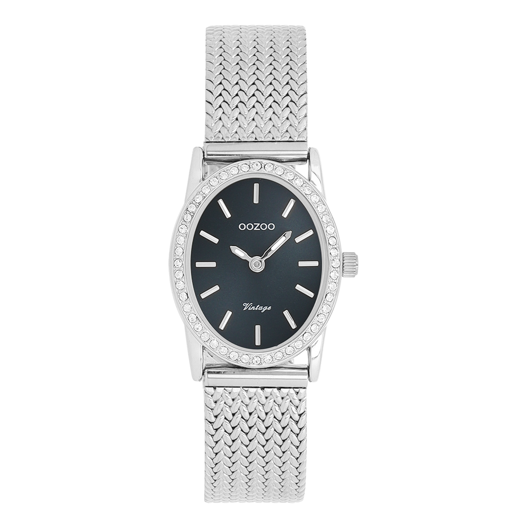 The classic look stays key in this trendy series and therefore, this oval OOZOO vintage design with a playful wink is the season must-have! This ladies watch is the perfect combination of fashion and comfort with its 28x23 mm silver coloured metal with crystals watch case and dark blue sunray dial. The silver coloured metal v-mesh bracelet makes this watch a trendy accessory, which you can wear every day. The dial has silver coloured stripes digits and matching hands. The C20431 adds the sparkle to your outfit. The mineral glass lays in a mm slim metal watch case with IP-plating. This design has a stainless steel backplate and is nickel safe. This watch has a 2ATM Japanese movement and is covered by a 2 year warranty (see section 3 of our Refund, shipping & warranty policy).