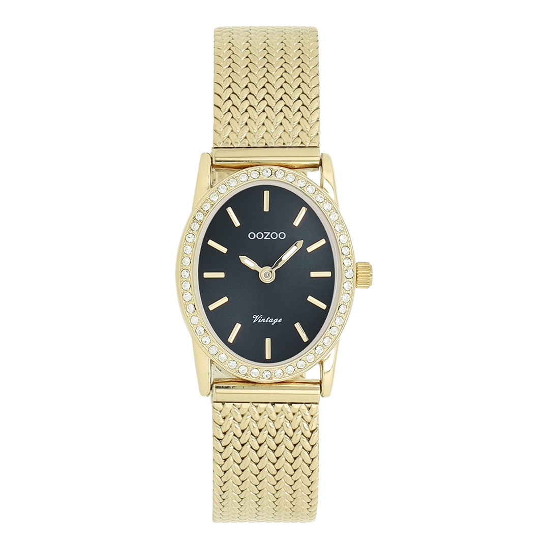 The classic look stays key in this trendy series and therefore, this oval OOZOO vintage design with a playful wink is the season must-have! This ladies watch is the perfect combination of fashion and comfort with its 28x23 mm gold coloured metal with crystals watch case and dark green sunray dial. The gold coloured metal v-mesh bracelet makes this watch a trendy accessory, which you can wear every day. The dial has gold coloured stripes digits and matching hands. The C20434 adds the sparkle to your outfit. The mineral glass lays in a mm slim metal watch case with IP-plating. This design has a stainless steel backplate and is nickel safe. This watch has a 2ATM Japanese movement and is covered by a 2 year warranty (see section 3 of our Refund, shipping & warranty policy).