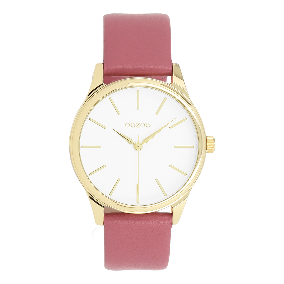 Gold coloured OOZOO watch with pink leather strap - C11676