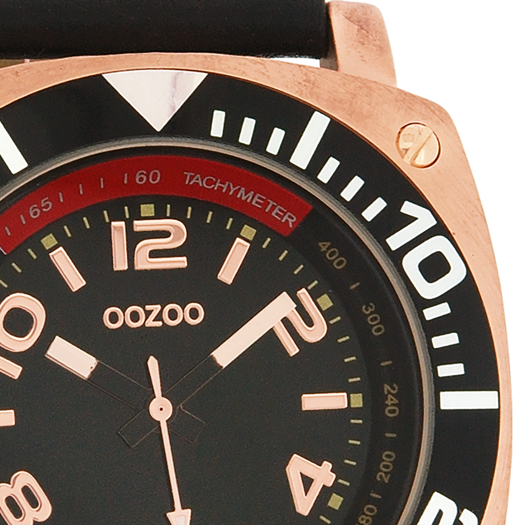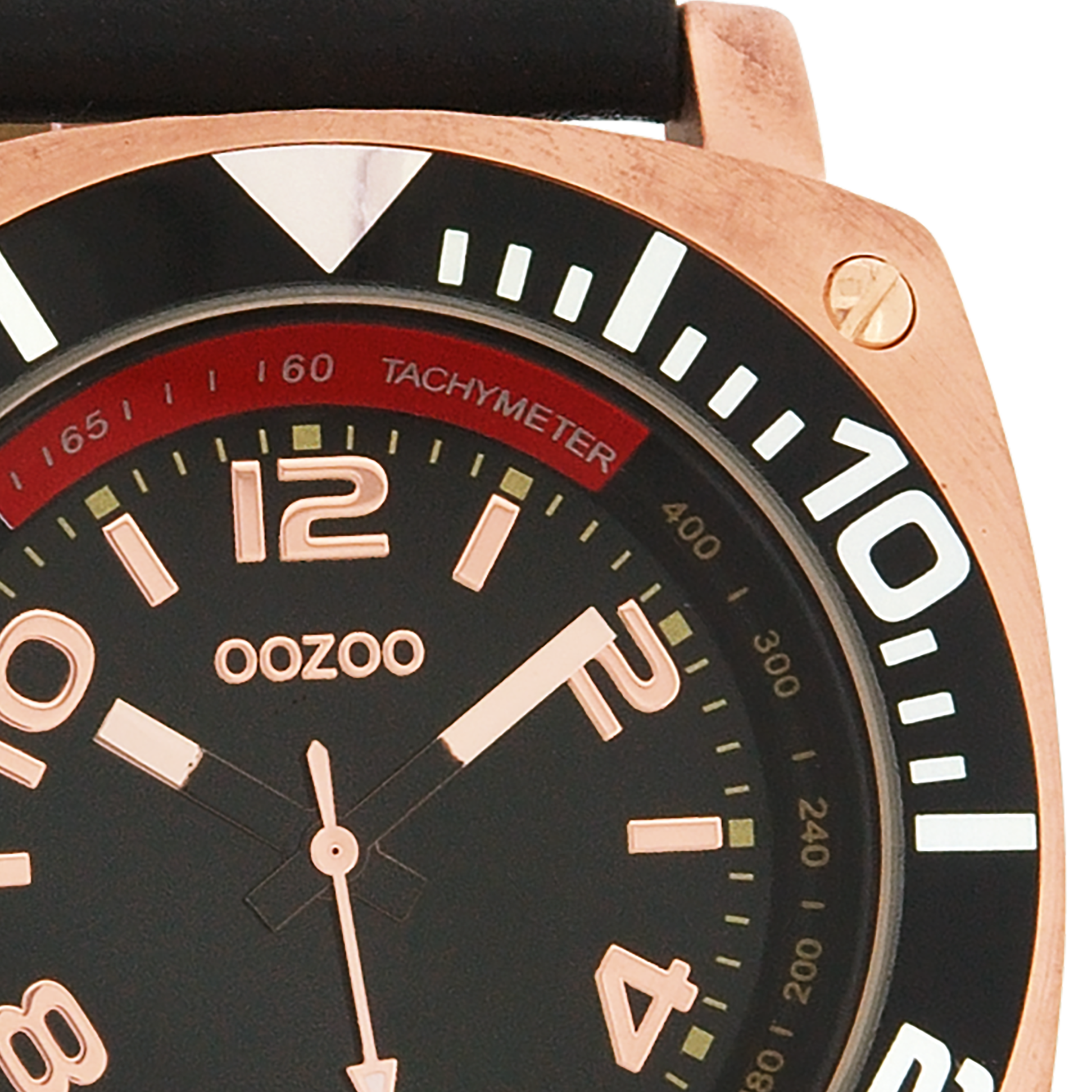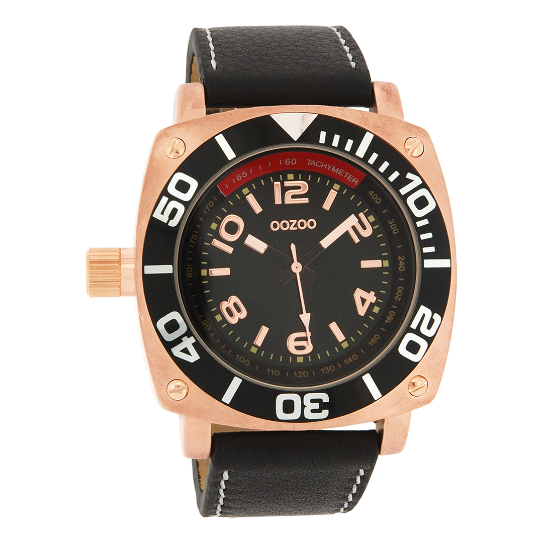 Rose gold coloured OOZOO watch with black leather strap - C2282