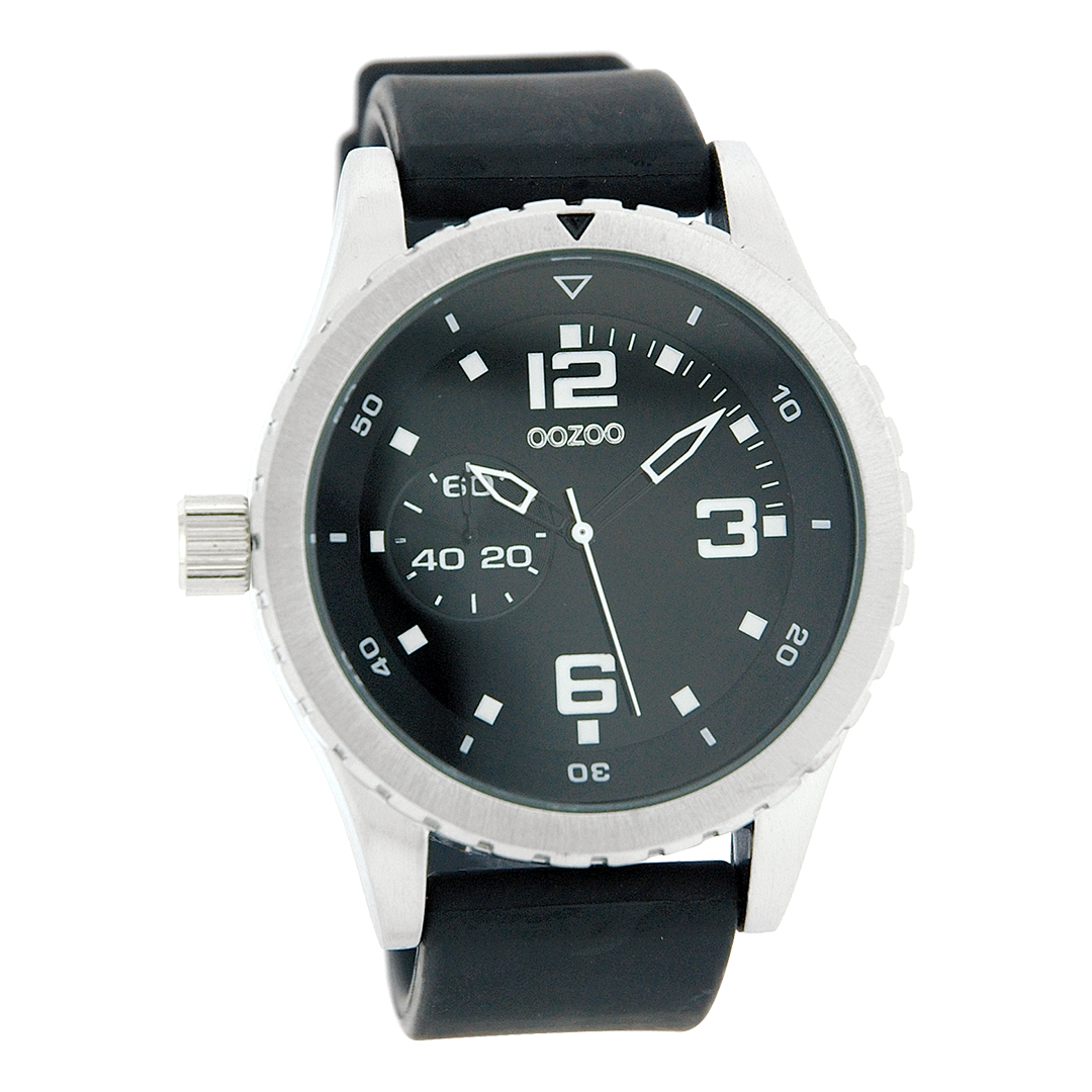 Silver coloured OOZOO watch with black rubber strap - C3679