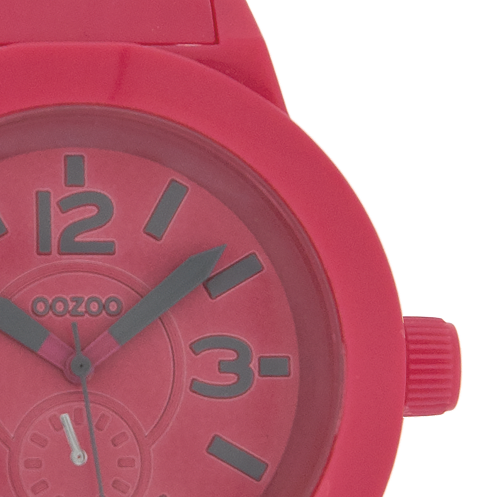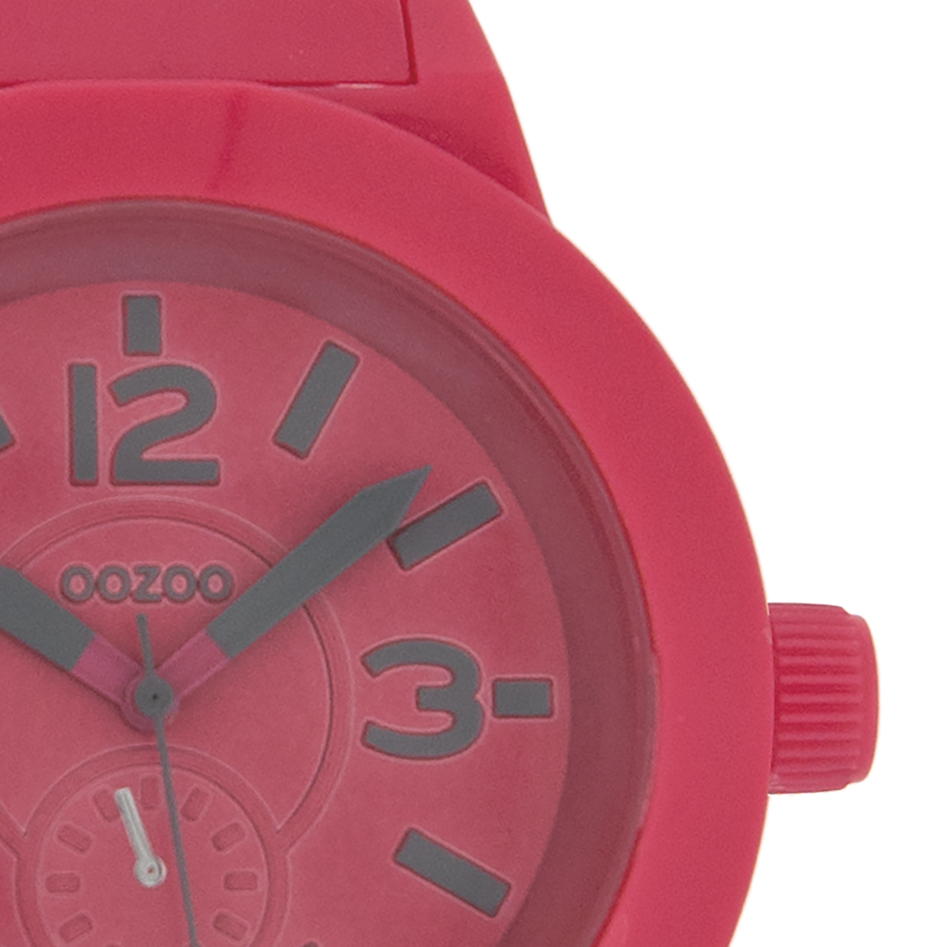 Stand out with this beautiful round ladies design from the trendy OOZOO Timepieces collection. The C4117 has a matte pink plastic watch strap and 45 mm pink plastic watch case. You are making quite the fashion statement with this pink dial, dark grey stripes and numbers digits and matching hands. This essential watch for your wardrobe has a mineral glass, stainless steel backplate and is nickel safe. This watch has a 2 Japanese movement and is covered by a 2 year warranty (see section 3 of our Refund, shipping & warranty policy).