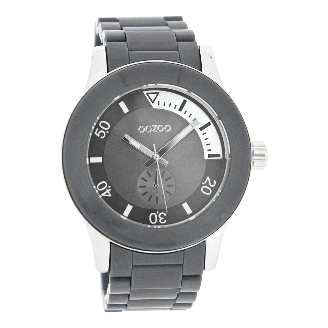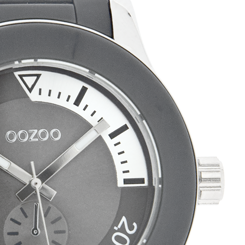 Silver coloured OOZOO watch with dark grey plastic watch strap - C4257