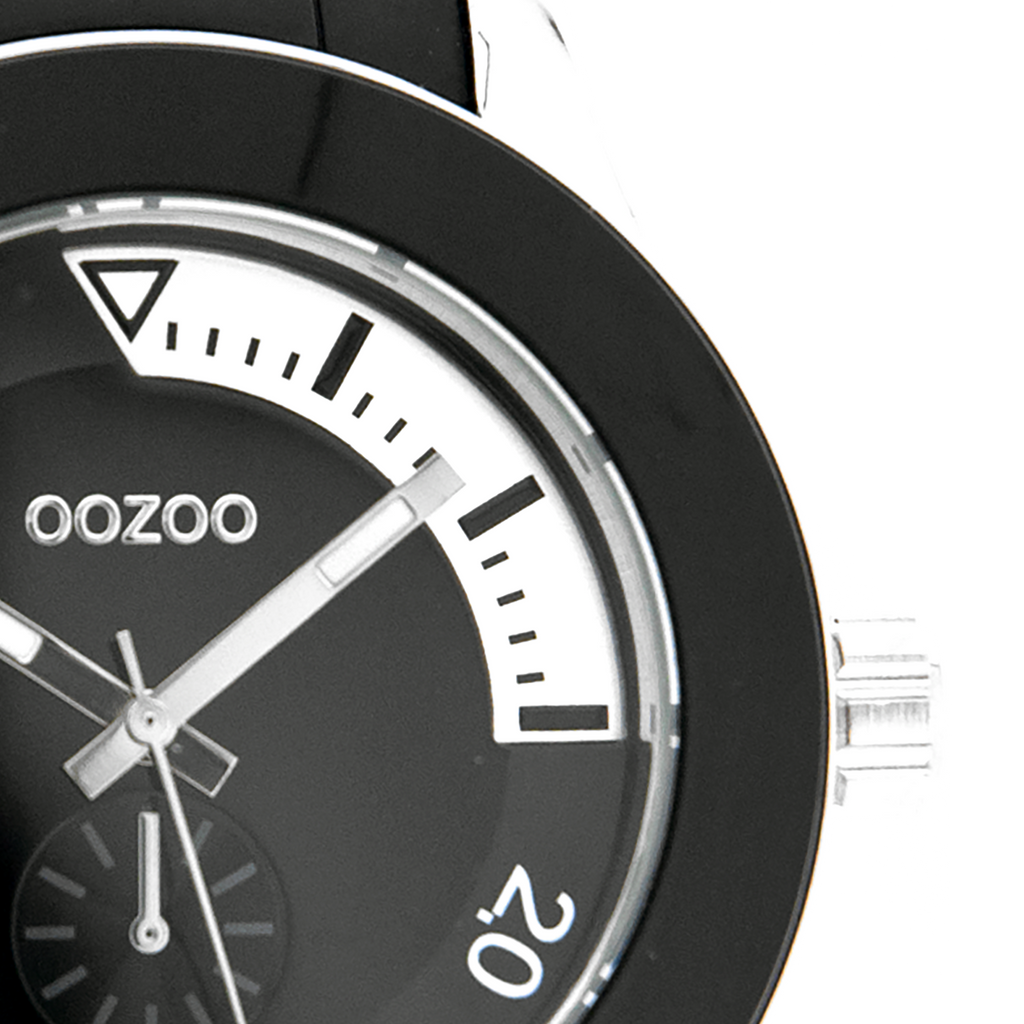 Silver coloured OOZOO watch with black plastic watch strap - C4259