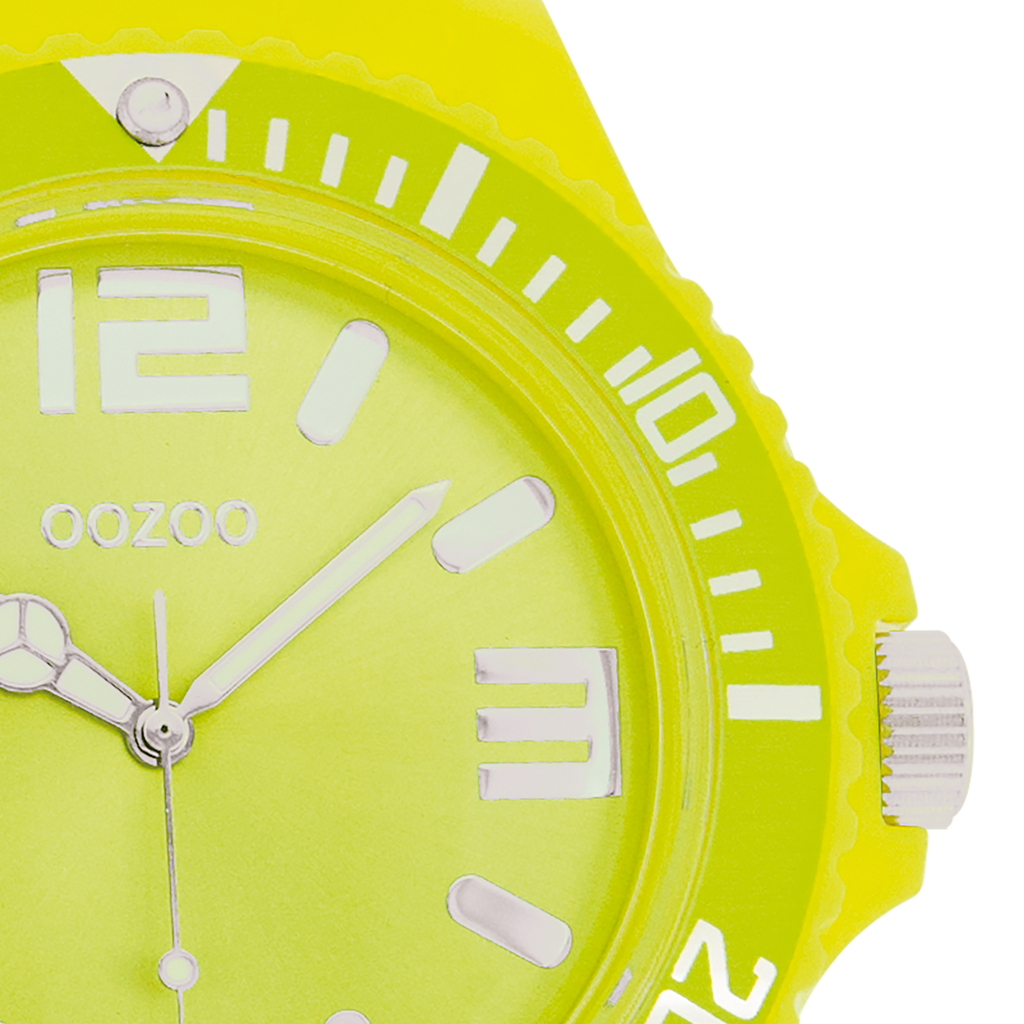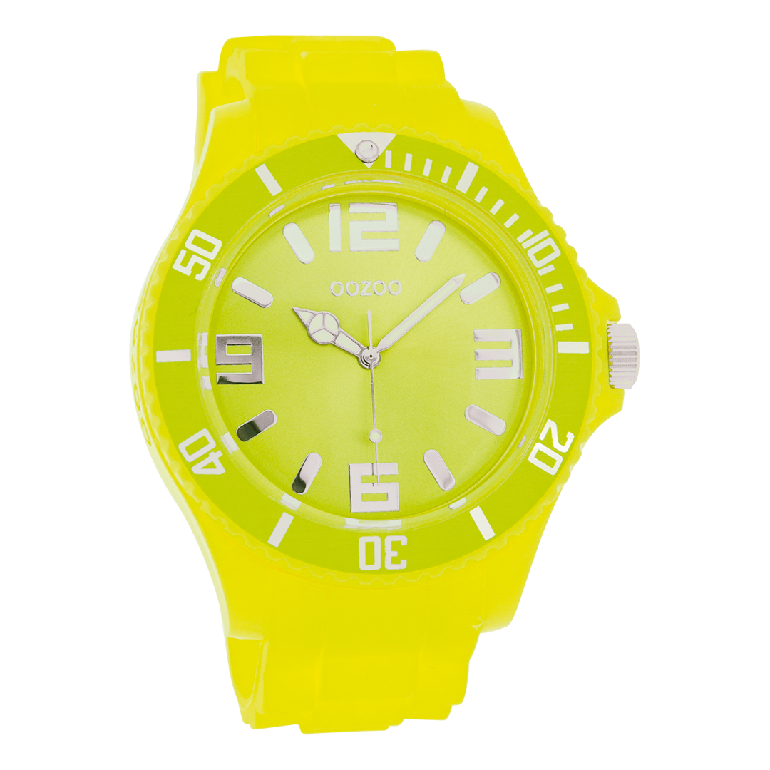 Stand out with this beautiful round unisex design from the trendy OOZOO Timepieces collection. The C4332 has a yellow rubber strap and 48 mm yellow plastic watch case. You are making quite the fashion statement with this yellow sunray dial, white stripes and numbers digits and silver coloured/white hands. This essential watch for your wardrobe has a mineral glass, stainless steel backplate and is nickel safe. This watch has a 2 Japanese movement and is covered by a 2 year warranty (see section 3 of our Refund, shipping & warranty policy).
