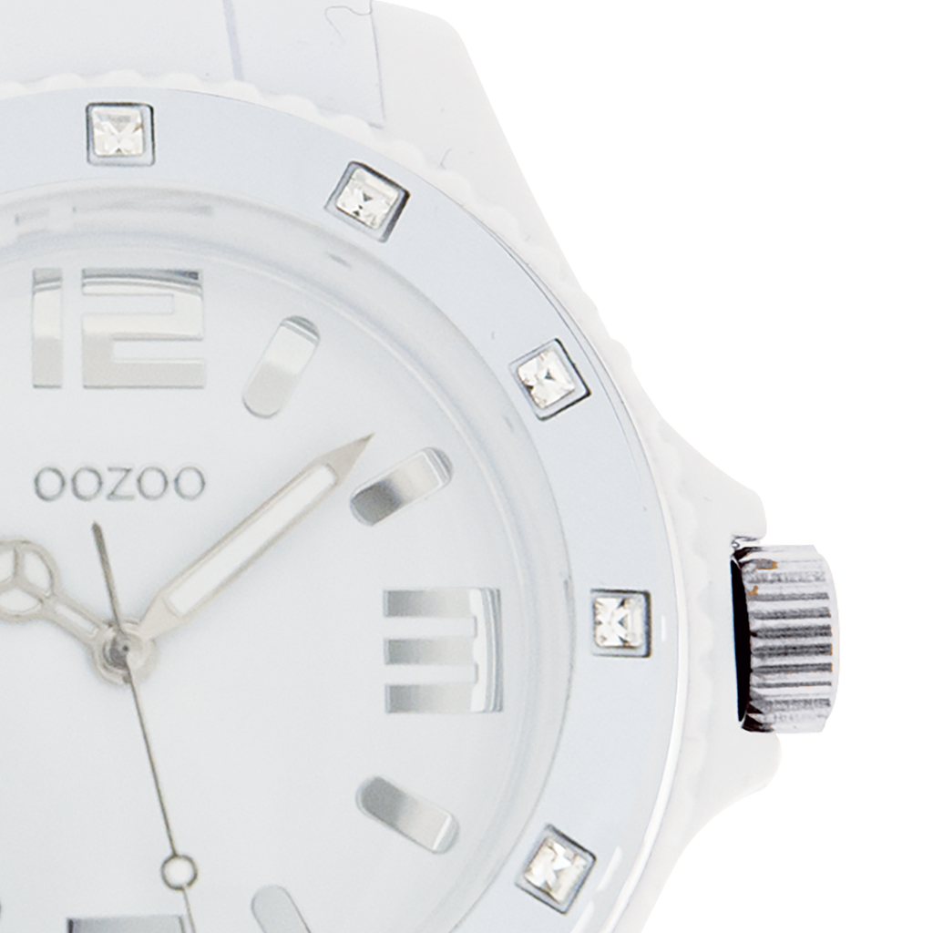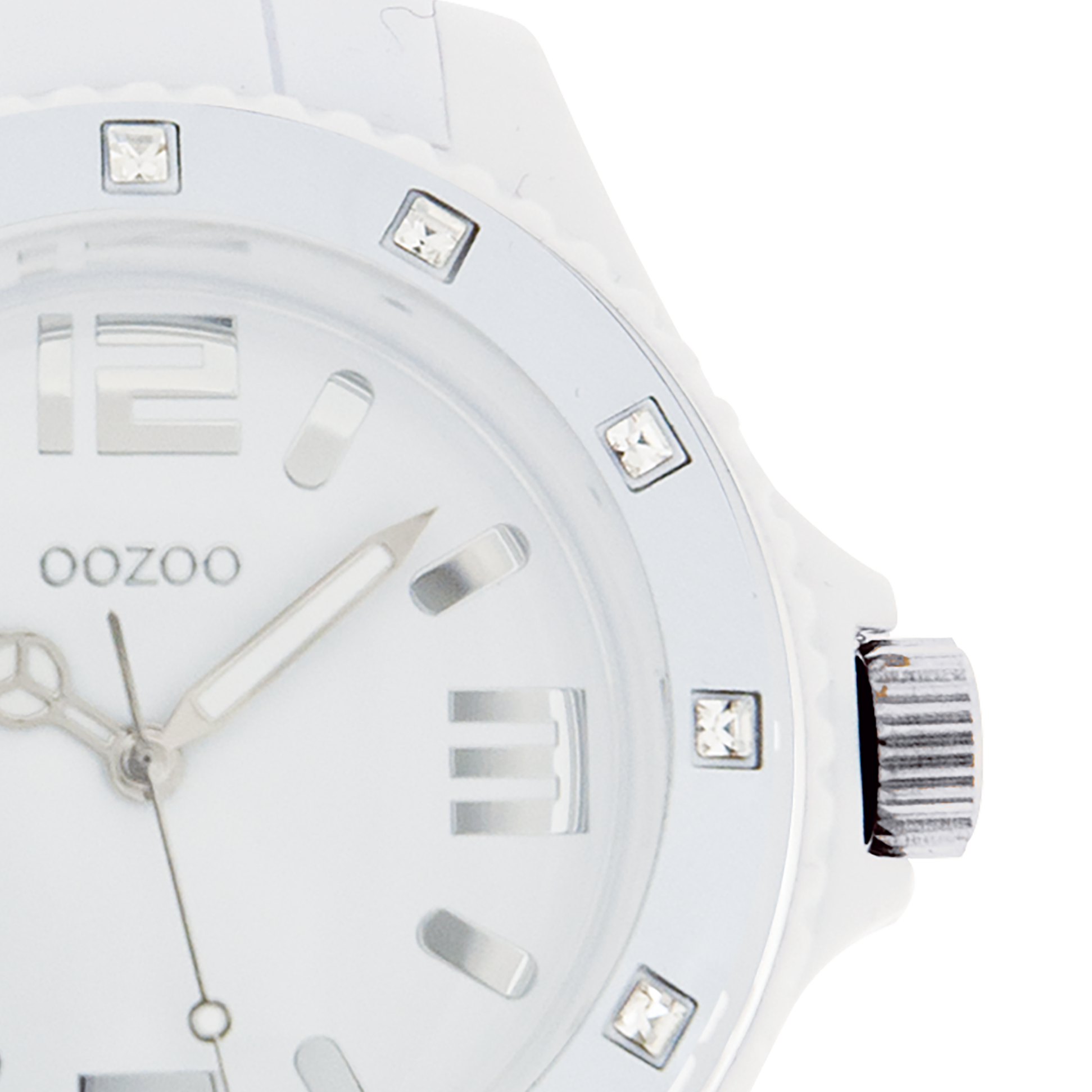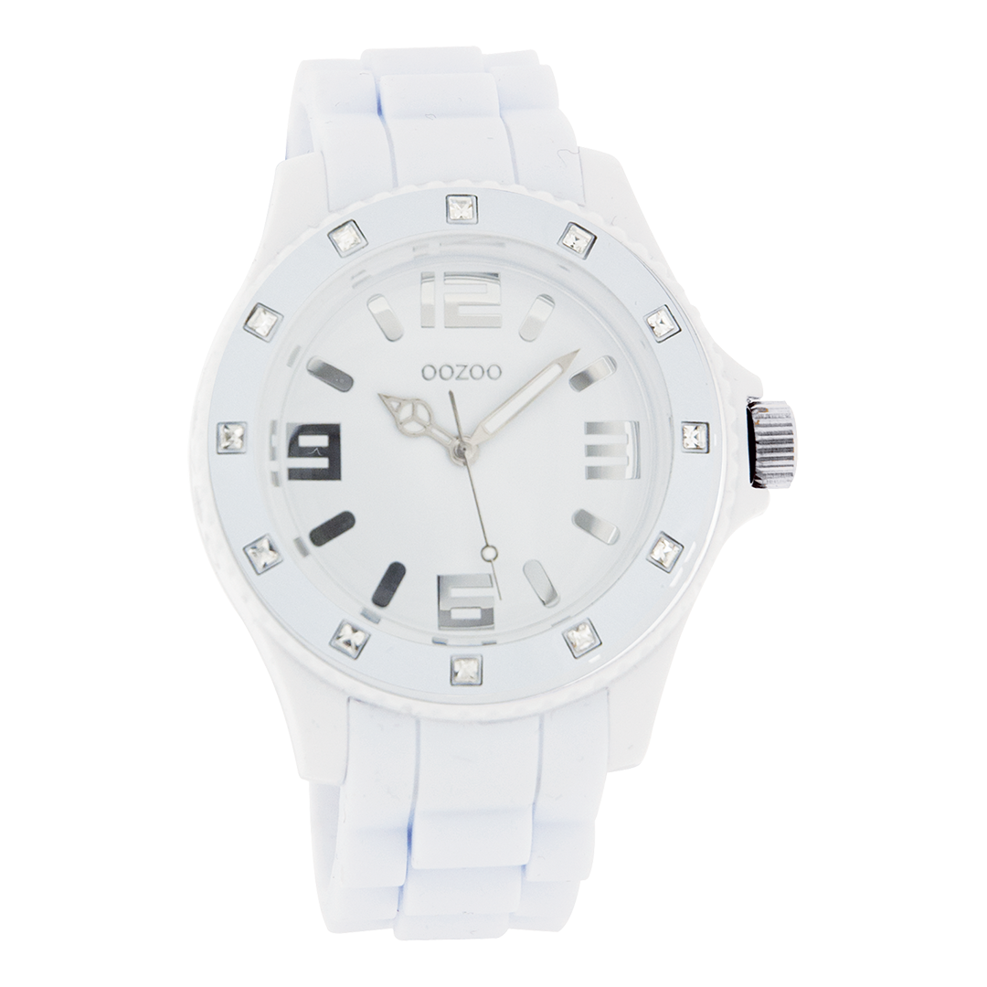 Stand out with this beautiful round unisex design from the trendy OOZOO Timepieces collection. The C4356 has a white rubber strap and 43 mm white plastic watch case. You are making quite the fashion statement with this white dial, silver coloured stripes and numbers digits and silver coloured/white hands. This essential watch for your wardrobe has a mineral glass, stainless steel backplate and is nickel safe. This watch has a 2 Japanese movement and is covered by a 2 year warranty (see section 3 of our Refund, shipping & warranty policy).