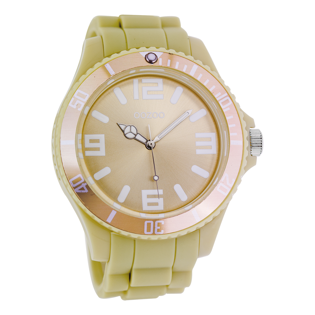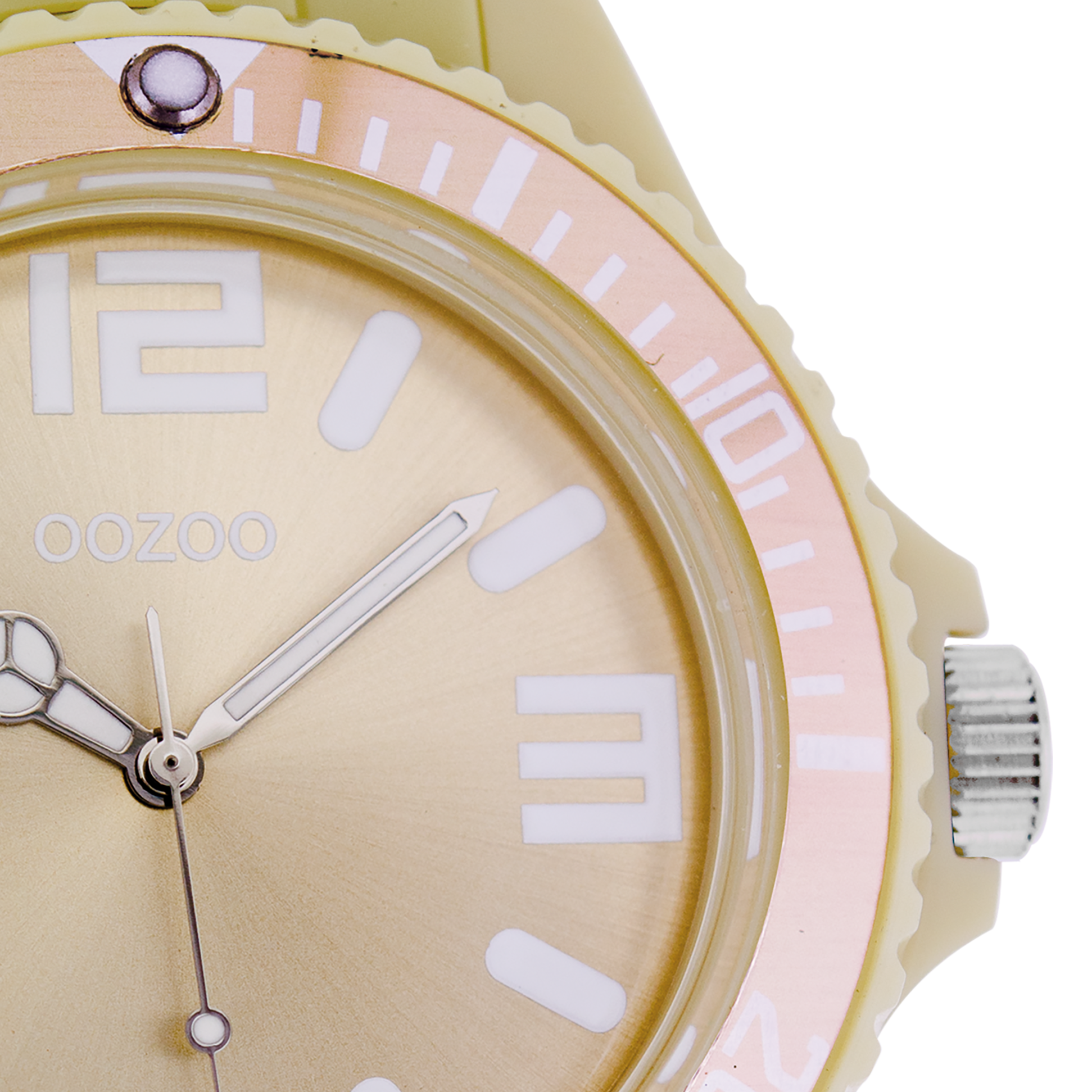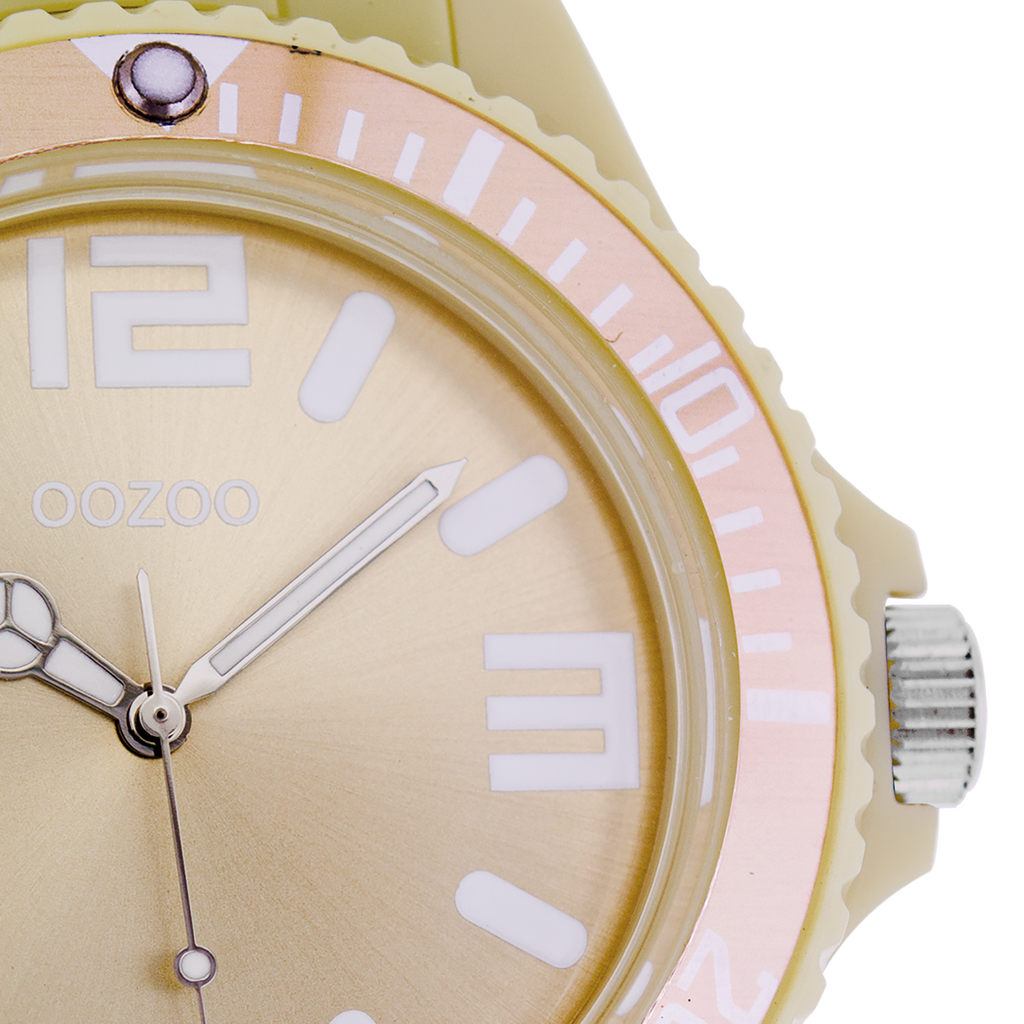 Stand out with this beautiful round unisex design from the trendy OOZOO Timepieces collection. The C4657 has a beige rubber strap and 48 mm beige plastic watch case. You are making quite the fashion statement with this beige sunray dial, white stripes and numbers digits and silver coloured/white hands. This essential watch for your wardrobe has a mineral glass, stainless steel backplate and is nickel safe. This watch has a 2 Japanese movement and is covered by a 2 year warranty (see section 3 of our Refund, shipping & warranty policy).
