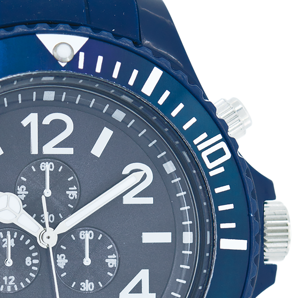 Stand out with this beautiful round unisex design from the trendy OOZOO Timepieces collection. The C4828 has a dark blue rubber strap and 48 mm dark blue plastic watch case. You are making quite the fashion statement with this dark blue sunray dial, silver coloured stripes and numbers digits and silver coloured/white hands. This essential watch for your wardrobe has a mineral glass, stainless steel backplate and is nickel safe. This watch has a 2 Japanese movement and is covered by a 2 year warranty (see section 3 of our Refund, shipping & warranty policy).