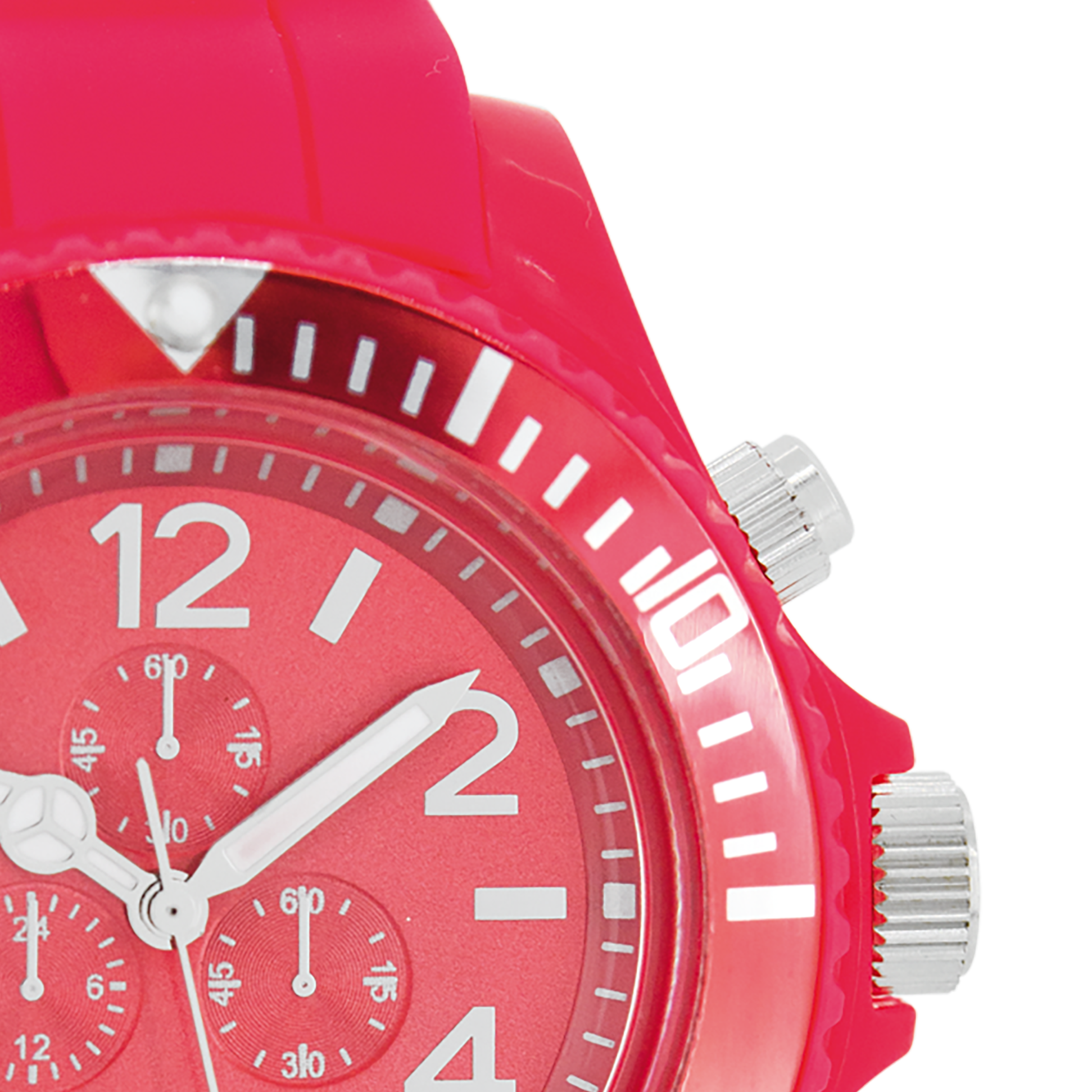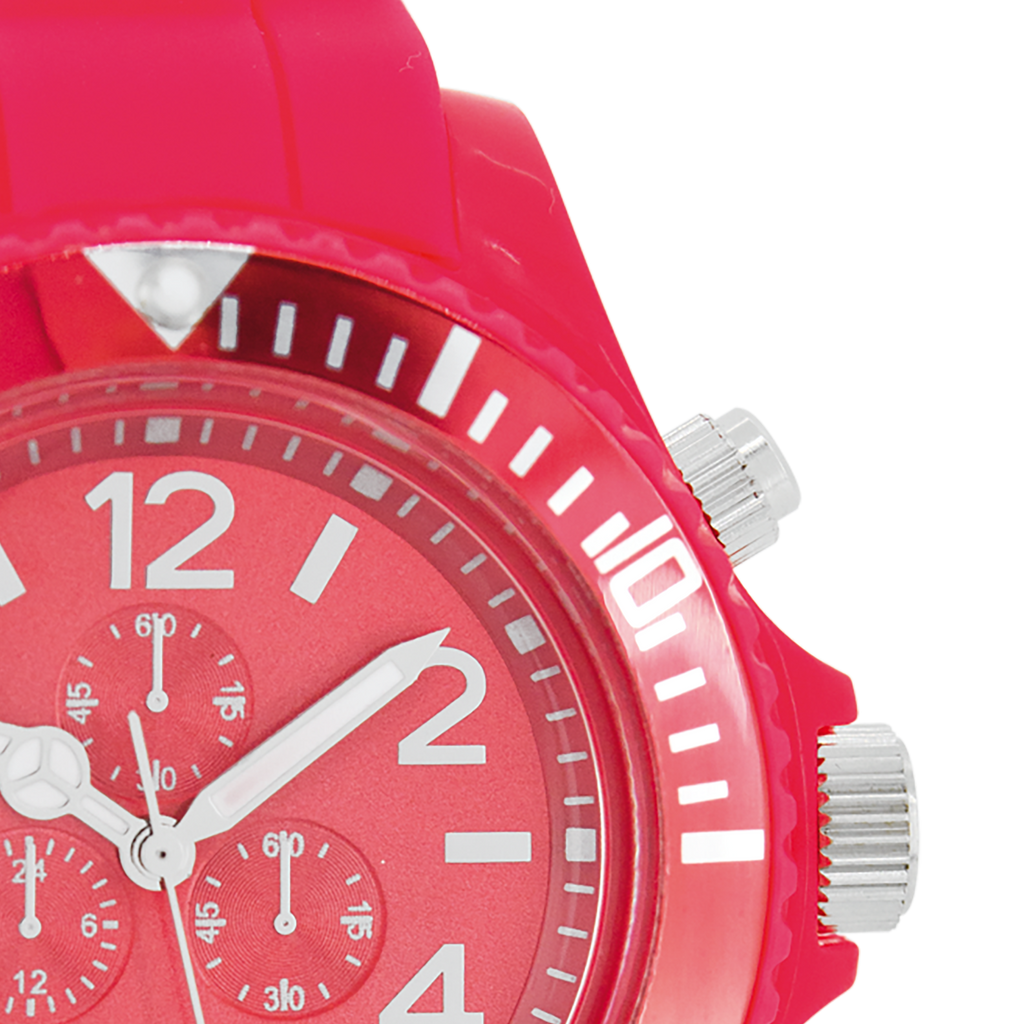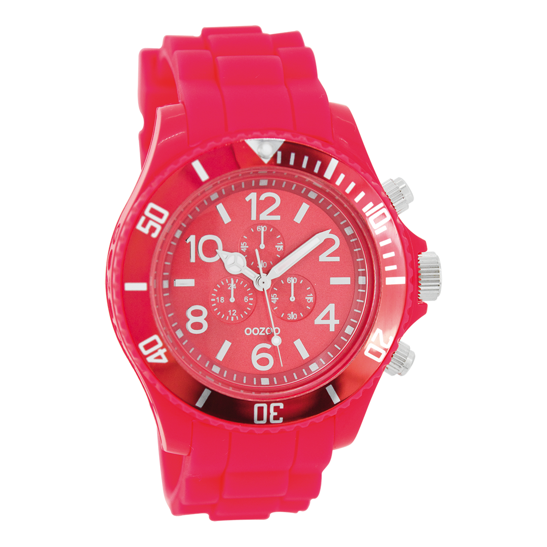 Stand out with this beautiful round unisex design from the trendy OOZOO Timepieces collection. The C4837 has a fluo pink rubber strap and 43 mm fluo pink plastic watch case. You are making quite the fashion statement with this fluo pink sunray dial, silver coloured stripes and numbers digits and silver coloured/white hands. This essential watch for your wardrobe has a mineral glass, stainless steel backplate and is nickel safe. This watch has a 2 Japanese movement and is covered by a 2 year warranty (see section 3 of our Refund, shipping & warranty policy).