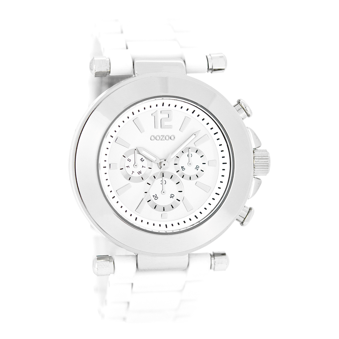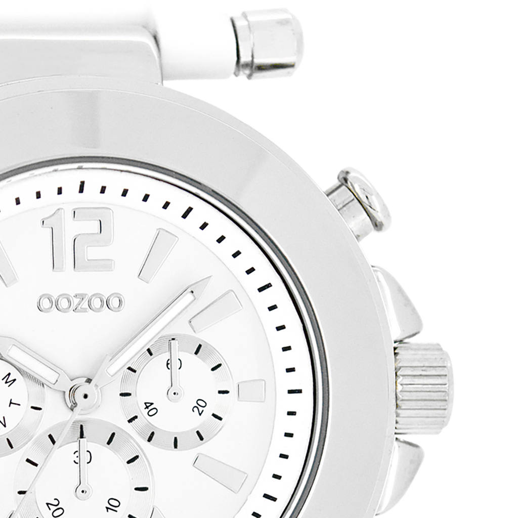 Silver coloured OOZOO watch with white plastic watch strap - C4880