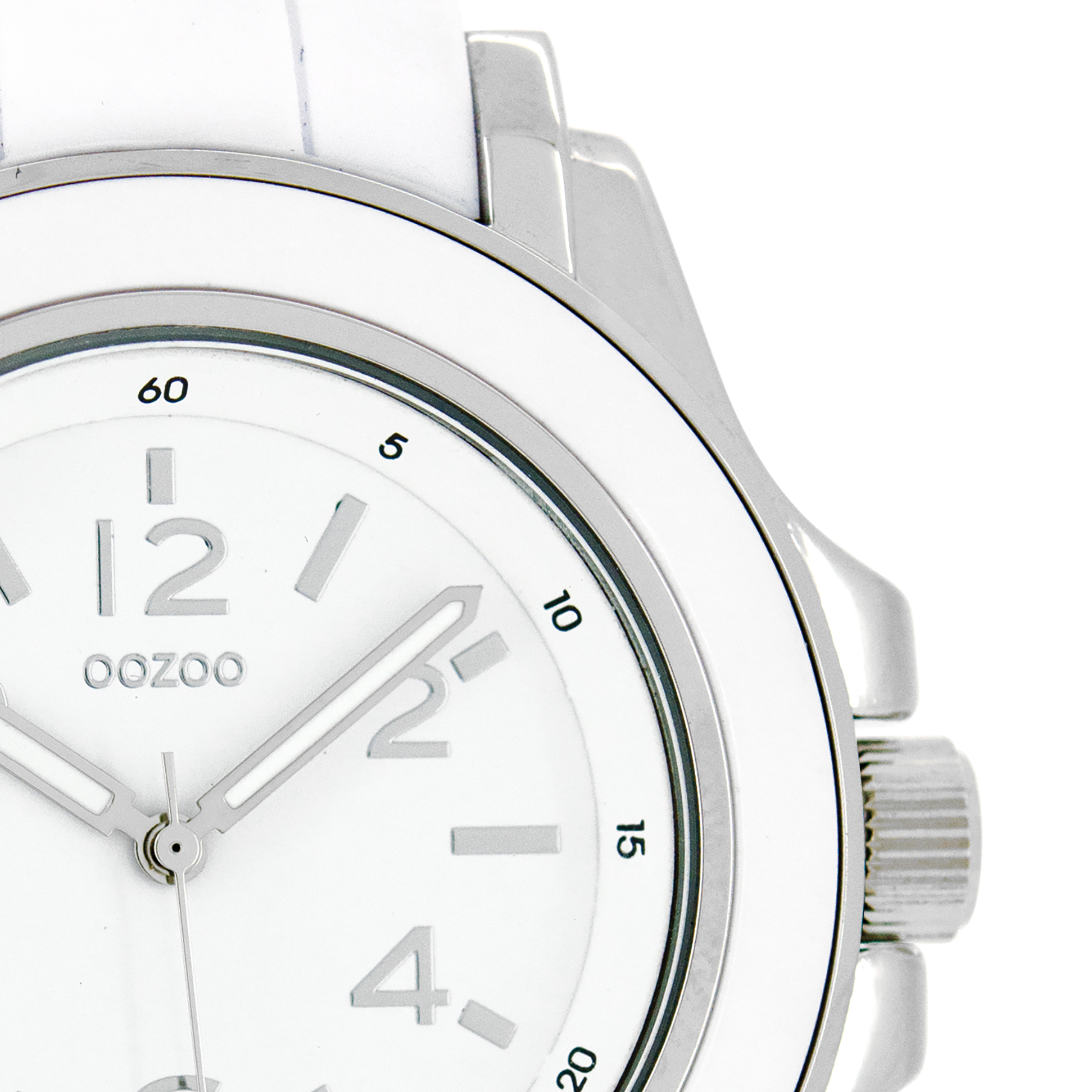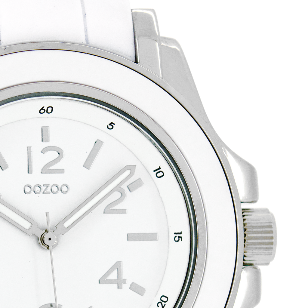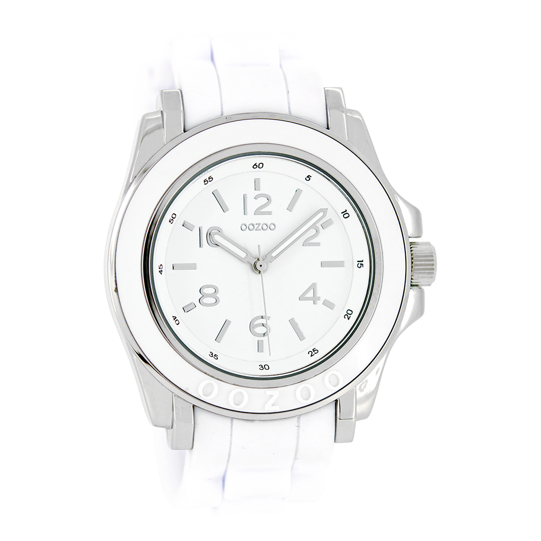 Silver coloured OOZOO watch with white rubber strap - C4915