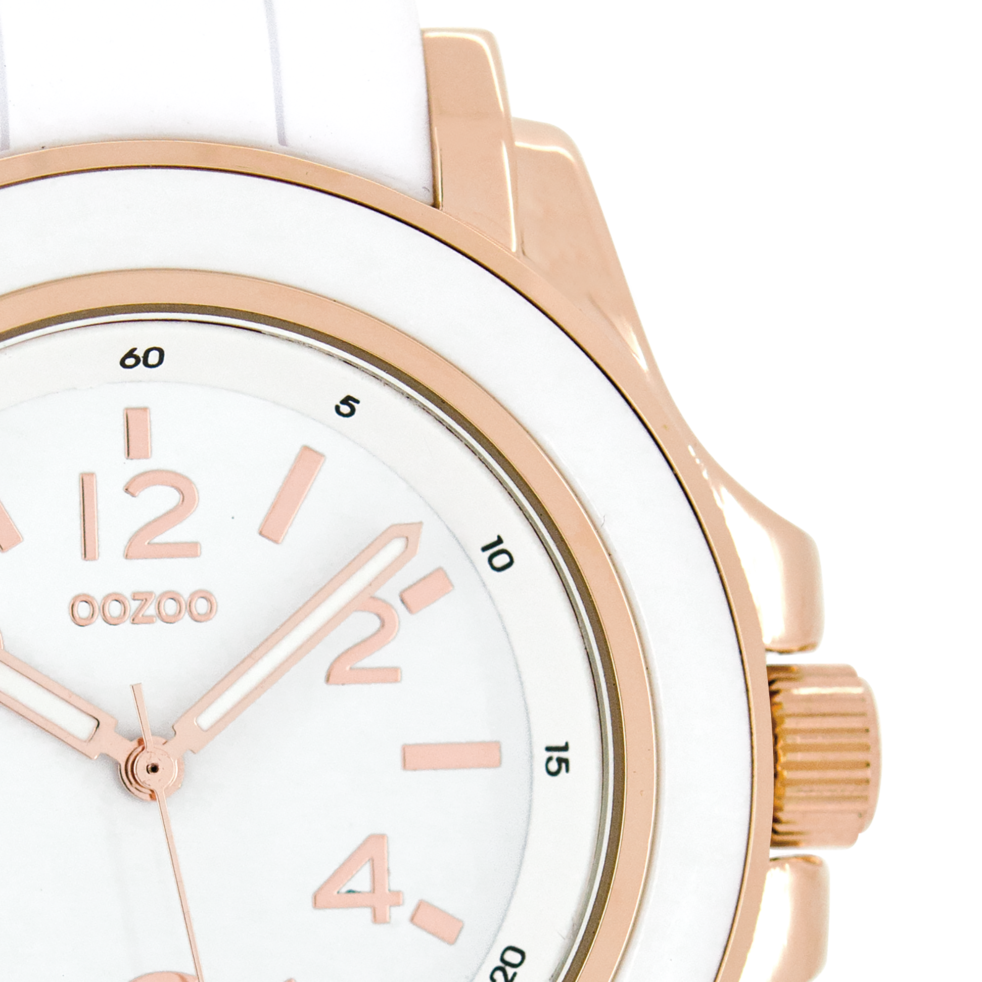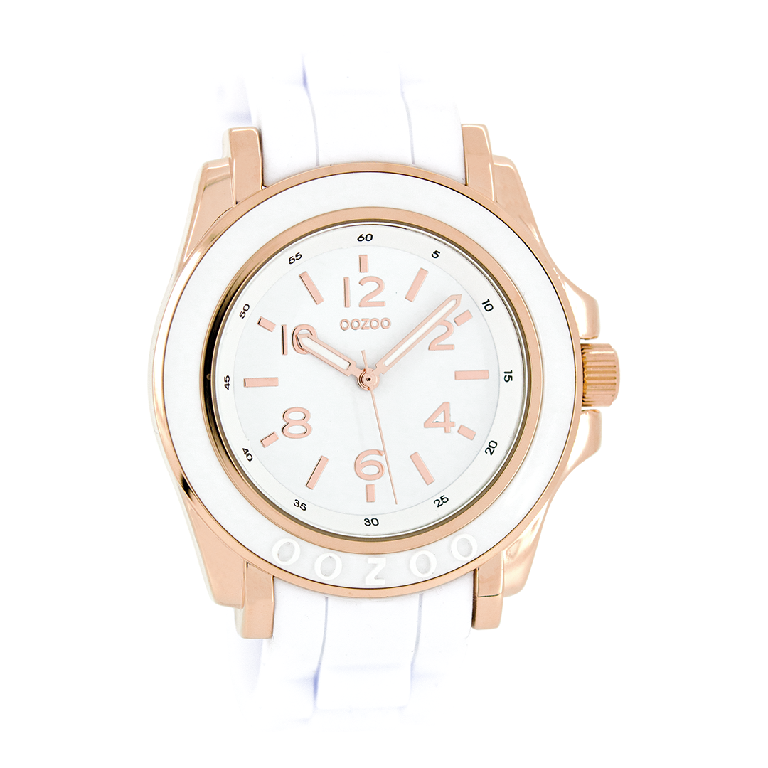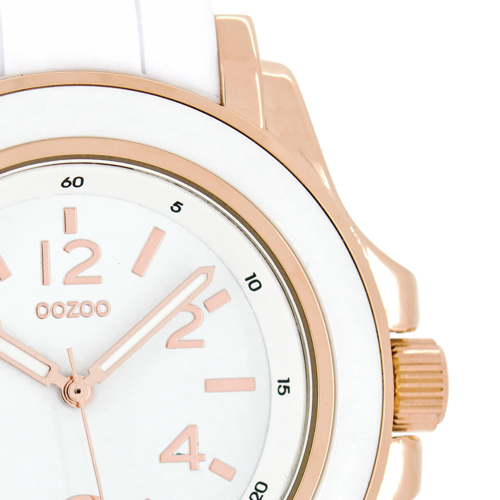 Rose gold coloured OOZOO watch with white rubber strap - C4916