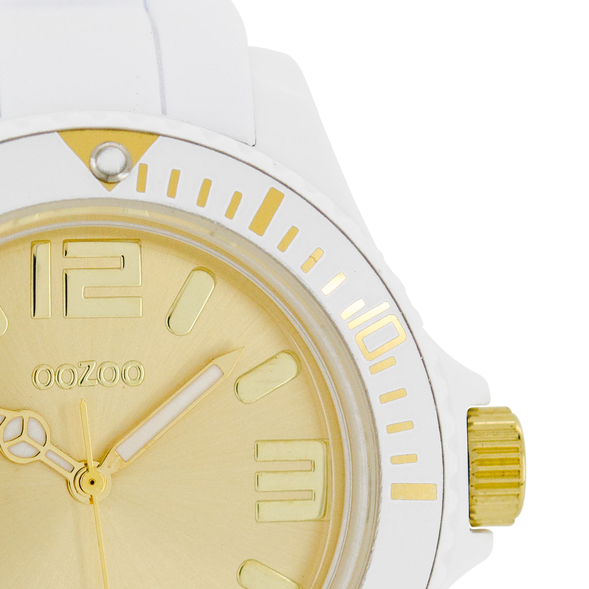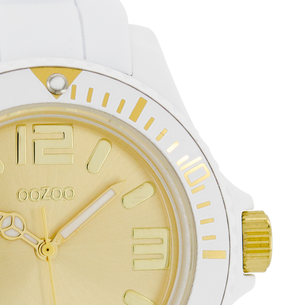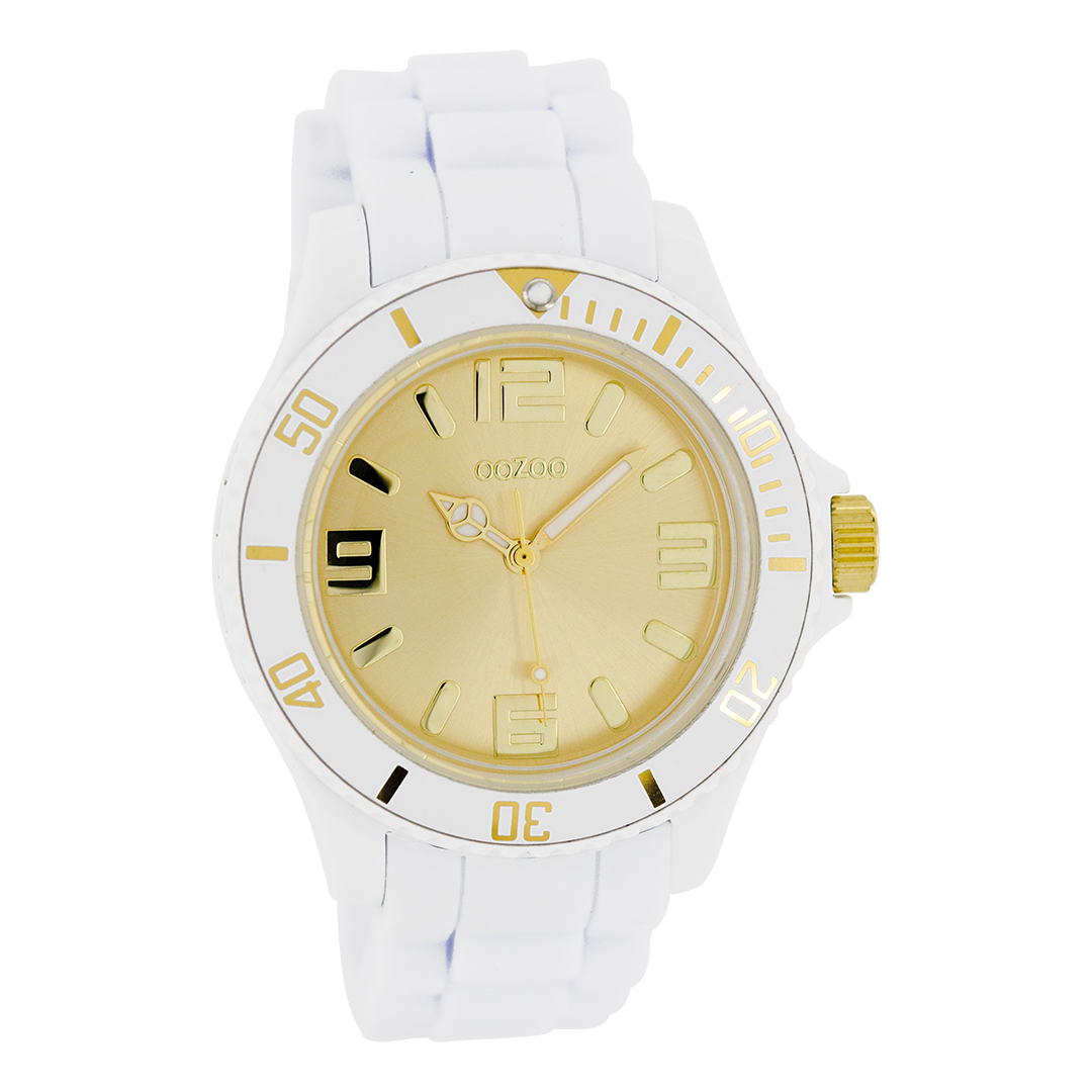 Stand out with this beautiful round unisex design from the trendy OOZOO Timepieces collection. The C5063 has a white rubber strap and 43 mm white plastic watch case. You are making quite the fashion statement with this gold coloured sunray dial, gold coloured stripes and numbers digits and silver coloured/white hands. This essential watch for your wardrobe has a mineral glass, stainless steel backplate and is nickel safe. This watch has a 2 Japanese movement and is covered by a 2 year warranty (see section 3 of our Refund, shipping & warranty policy).