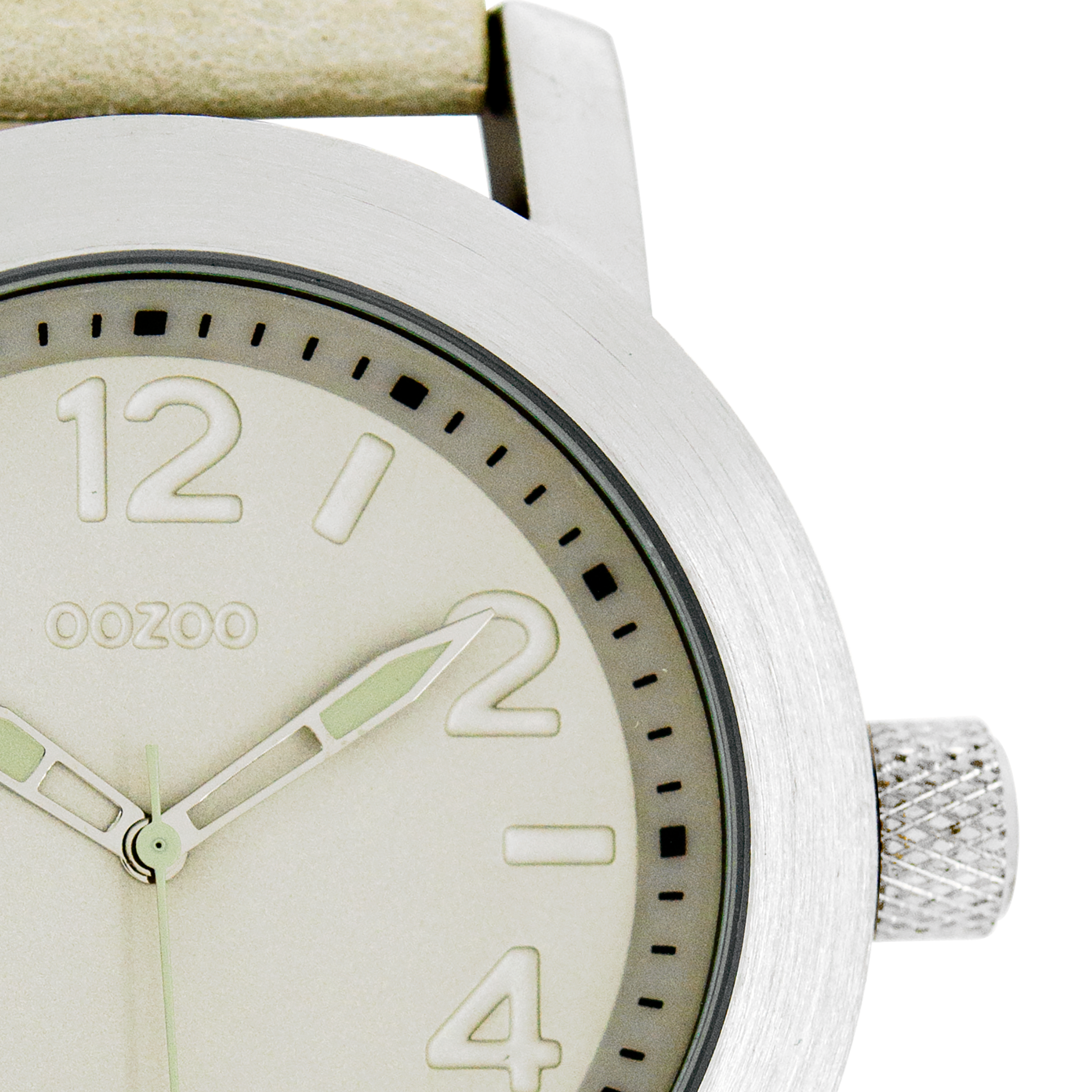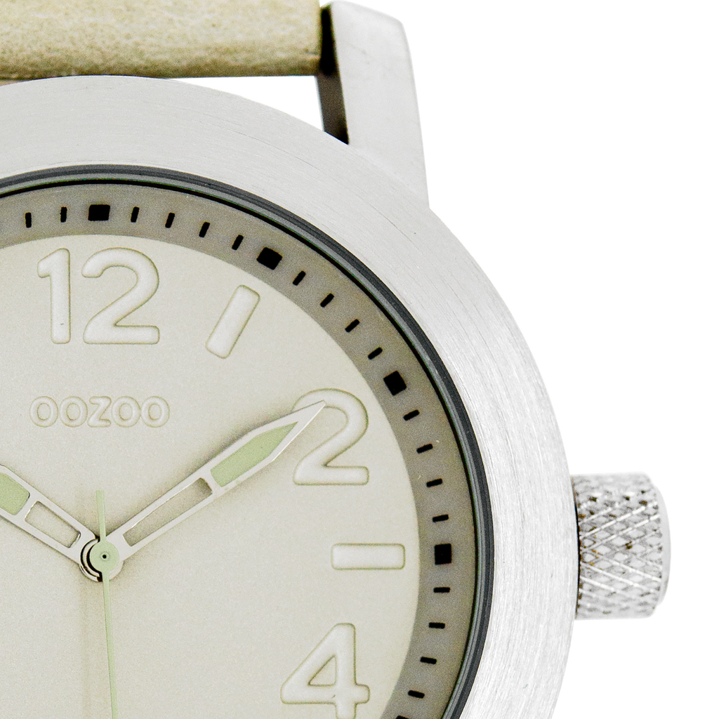 Silver coloured OOZOO watch with beige leather strap - C5150
