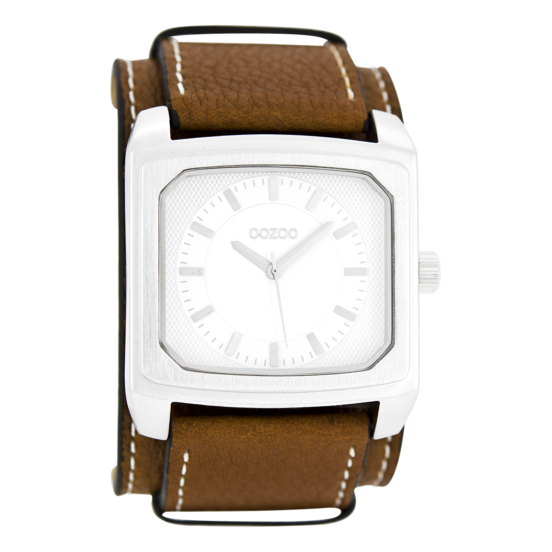 Stand out with this beautiful square gents design from the trendy OOZOO Timepieces collection. The C5210 has a stitched cognac leather strap and 45x42 mm silver coloured metal watch case. You are making quite the fashion statement with this white dial, silver coloured stripes digits and matching hands. This essential watch for your wardrobe has a mineral glass, stainless steel backplate and is nickel safe. This watch has a 2 Japanese movement and is covered by a 2 year warranty (see section 3 of our Refund, shipping & warranty policy).