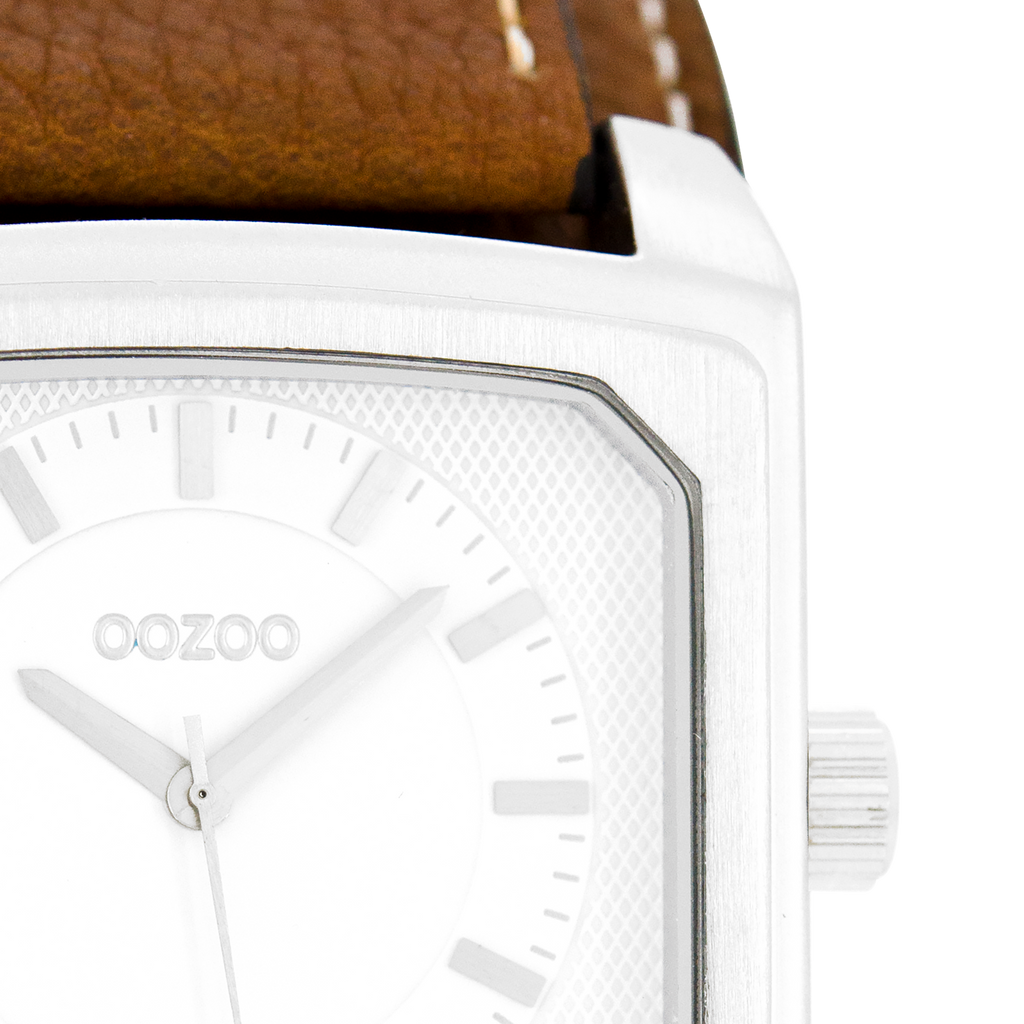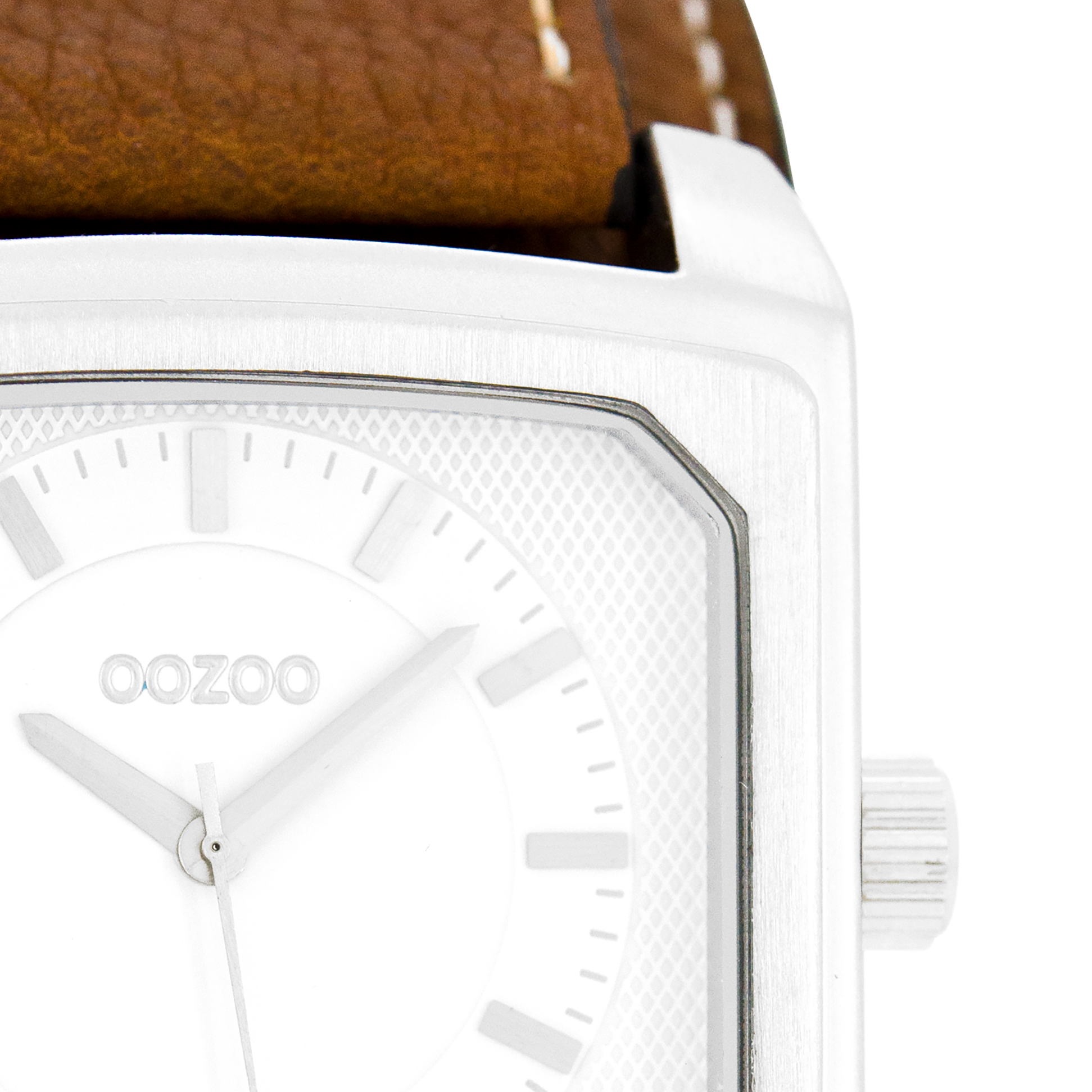 Silver coloured OOZOO watch with cognac leather strap - C5210