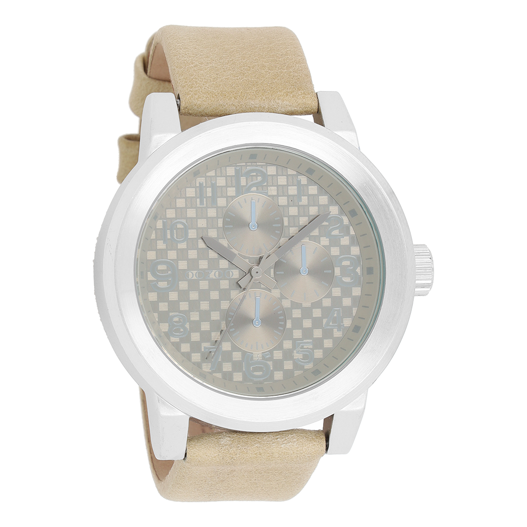 Silver coloured OOZOO watch with beige leather strap - C5581