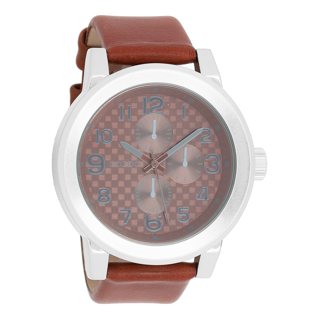 Silver coloured OOZOO watch with brown leather strap - C5582