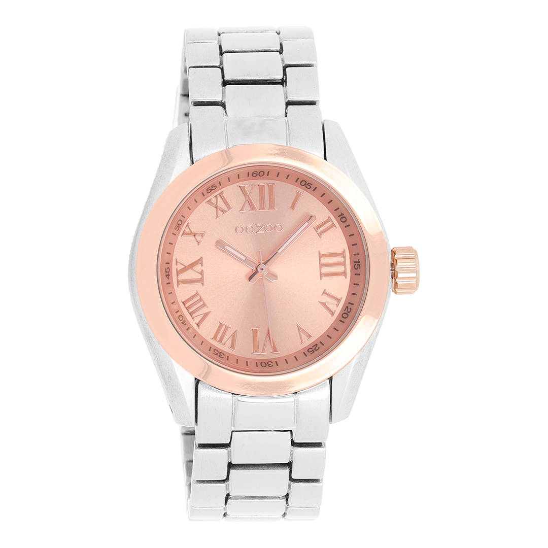 Silver coloured/rose gold OOZOO watch with silver coloured stainless steel bracelet - C5723