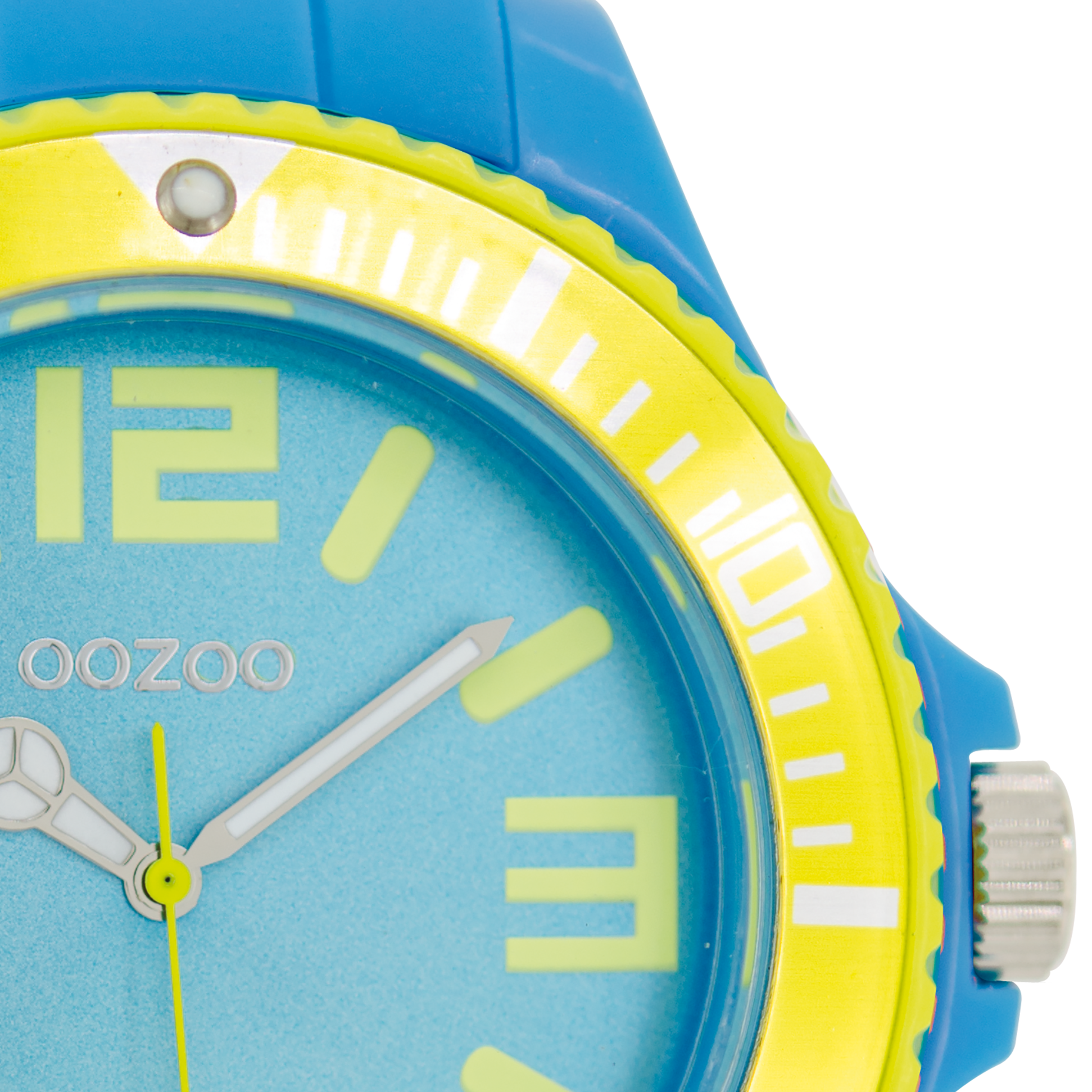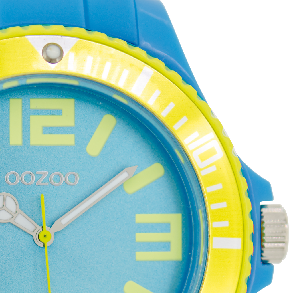 Stand out with this beautiful round unisex design from the trendy OOZOO Timepieces collection. The C5832 has a blue rubber strap and 48 mm blue plastic watch case. You are making quite the fashion statement with this blue dial, yellow stripes and numbers digits and silver coloured/white hands. This essential watch for your wardrobe has a mineral glass, stainless steel backplate and is nickel safe. This watch has a 2 Japanese movement and is covered by a 2 year warranty (see section 3 of our Refund, shipping & warranty policy).