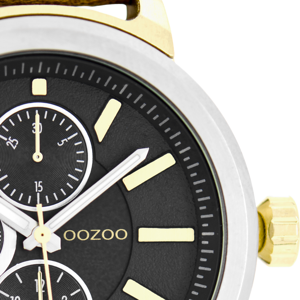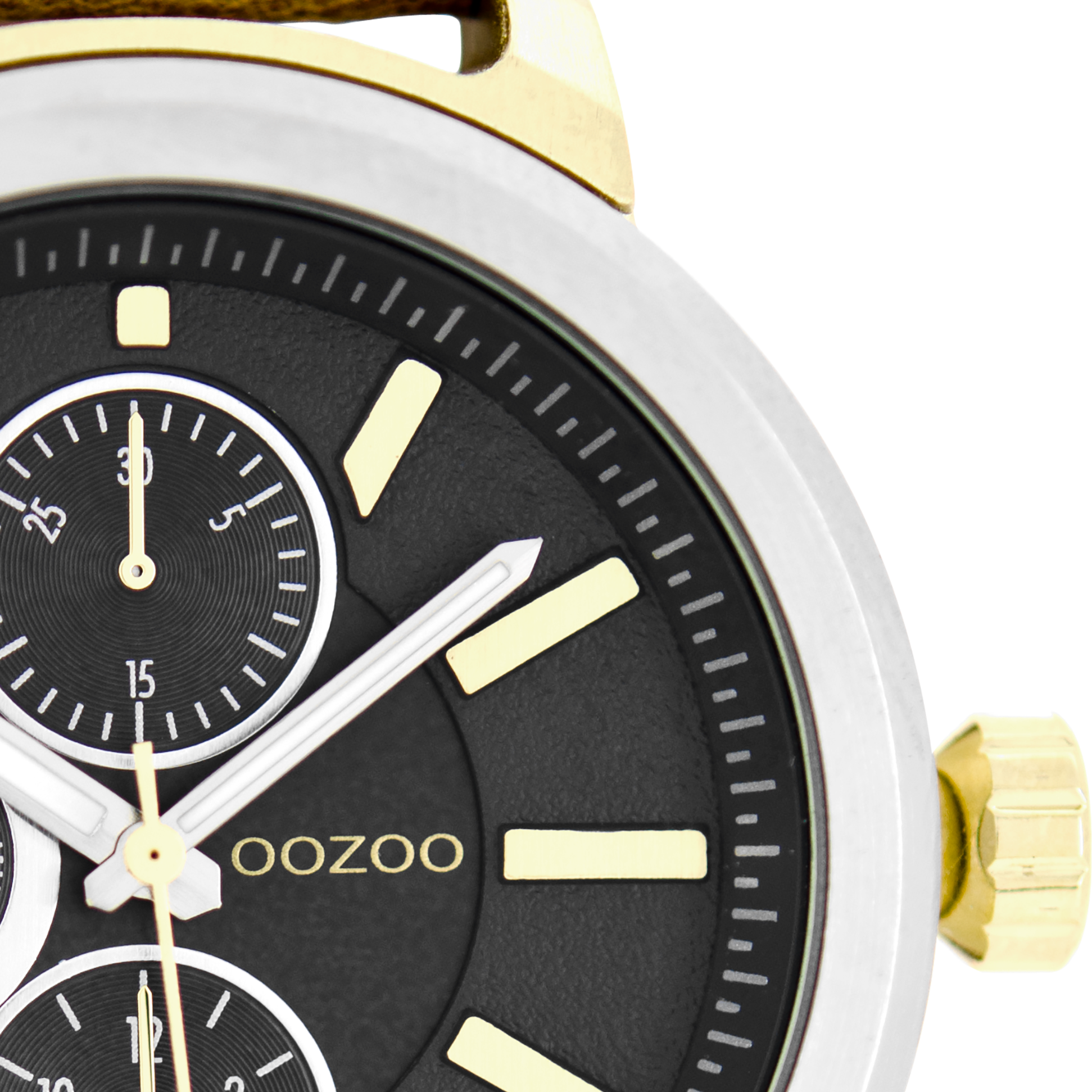 Stand out with this beautiful round gents design from the trendy OOZOO Timepieces collection. The C6065 has a sand leather strap and 47 mm silver coloured metal watch case. You are making quite the fashion statement with this black chrono dial, gold coloured stripes digits and silver coloured/white hands. This essential watch for your wardrobe has a mineral glass, stainless steel backplate and is nickel safe. This watch has a 2 Japanese movement and is covered by a 2 year warranty (see section 3 of our Refund, shipping & warranty policy).