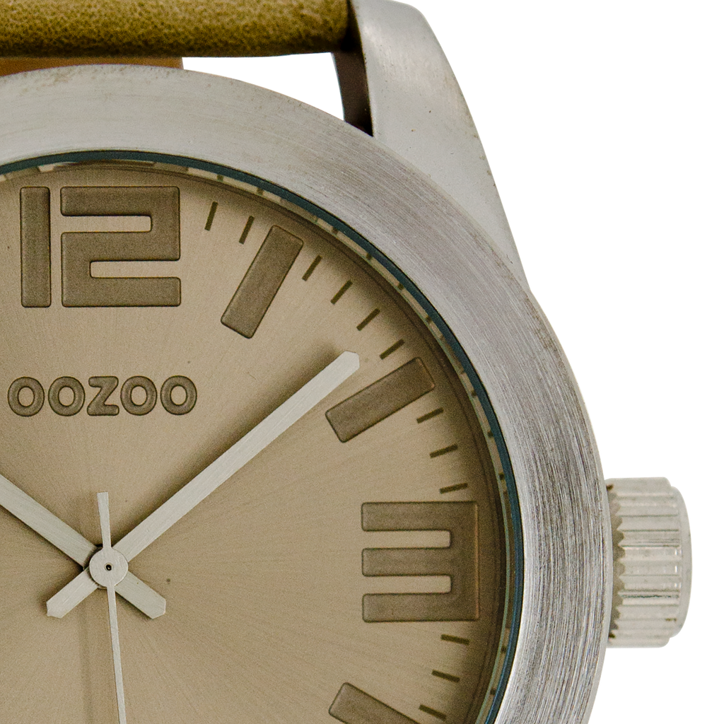 Silver coloured OOZOO watch with sand leather strap - C6106