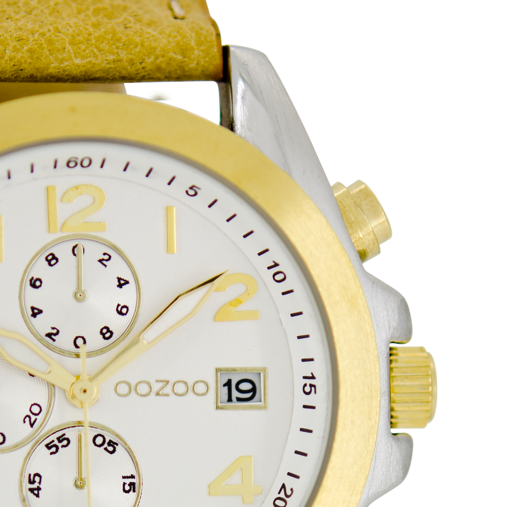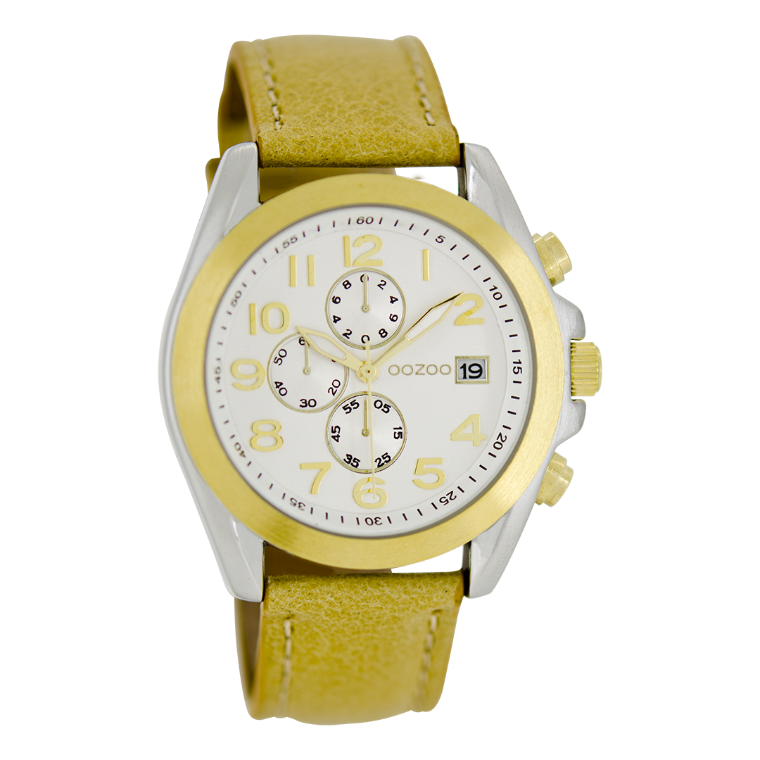 Silver coloured/gold OOZOO watch with sand leather strap - C6196