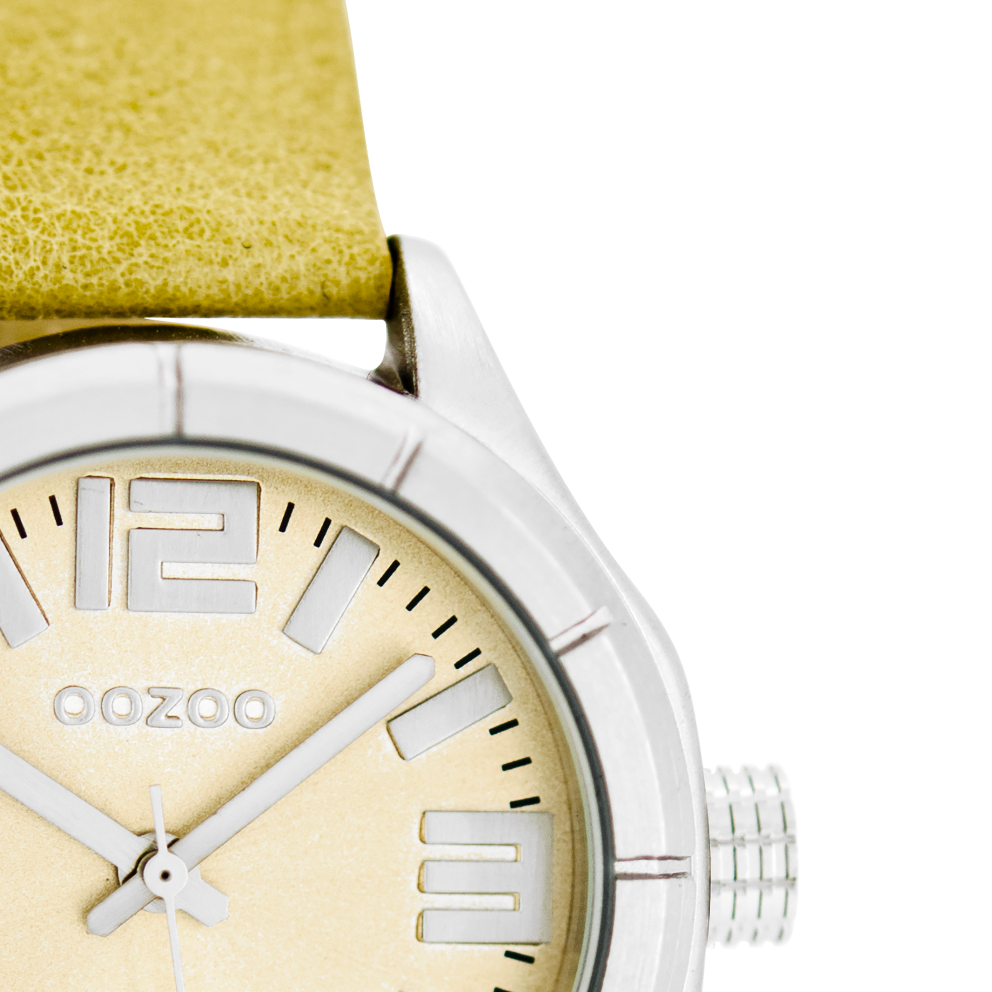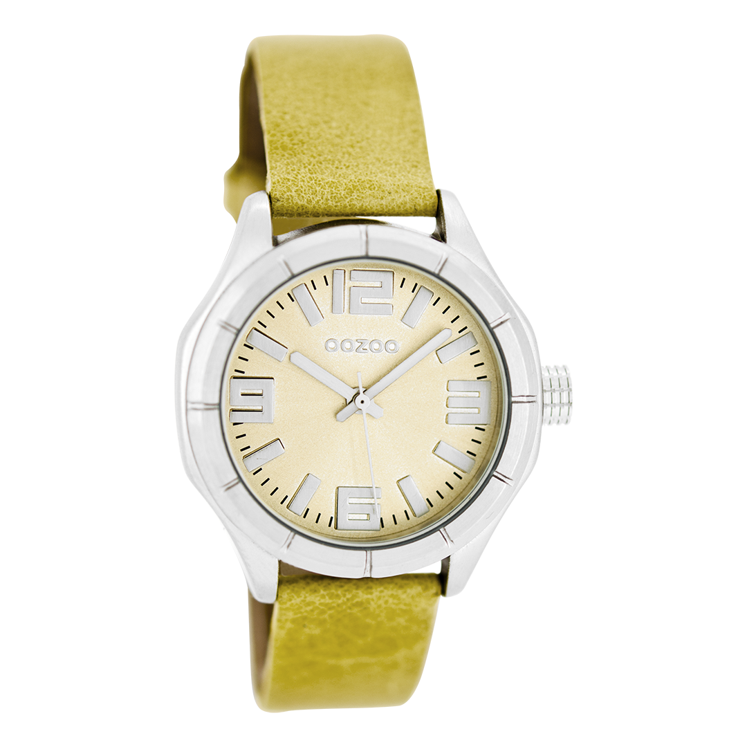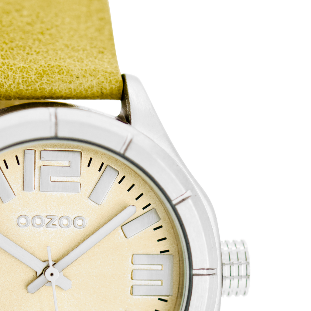 Silver coloured OOZOO watch with beige leather strap - C6200