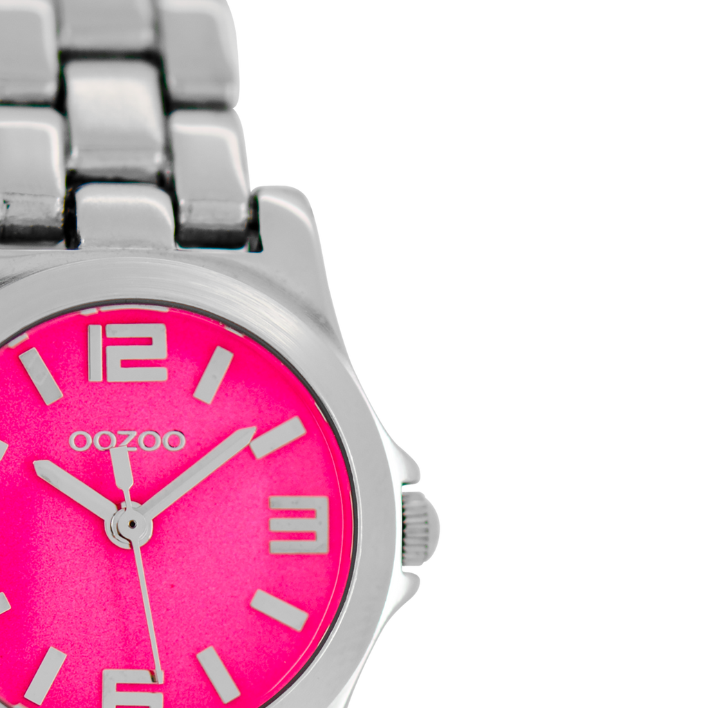 Stand out with this beautiful round ladies design from the trendy OOZOO Timepieces collection. The C6220 has a silver coloured stainless steel bracelet and 25 mm silver coloured metal watch case. You are making quite the fashion statement with this fluo pink dial, silver coloured stripes and numbers digits and matching hands. This essential watch for your wardrobe has a mineral glass, stainless steel backplate and is nickel safe. This watch has a 2 Japanese movement and is covered by a 2 year warranty (see section 3 of our Refund, shipping & warranty policy).